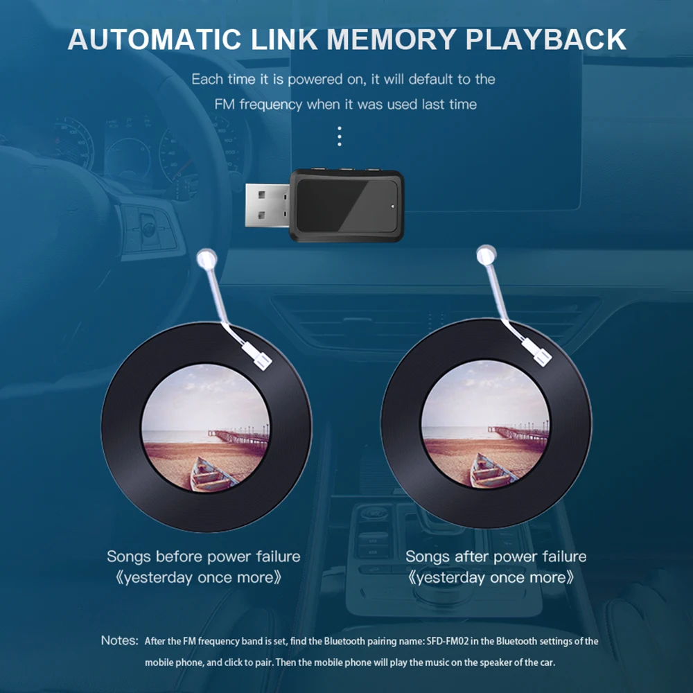 6. [Almacenamiento de memoria] Se conecta automáticamente a la última frecuencia FM utilizada después de la conexión.