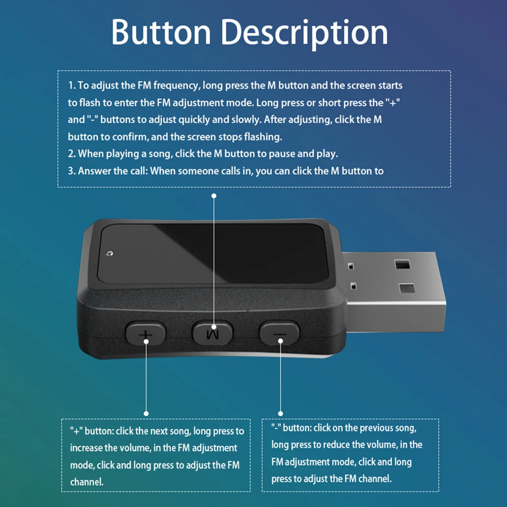 3. Botón M multifunción: ajusta la frecuencia de FM. Mantenga presionado el botón M y la pantalla comenzará a parpadear para entrar en el ajuste FM.