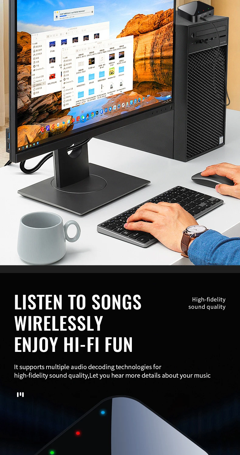 • Bluetooth 5.3 :Equipado con la tecnología Bluetooth 5.3, este adaptador ofrece una conexión inalámbrica estable y rápida para transmisión de audio sin interrupción.