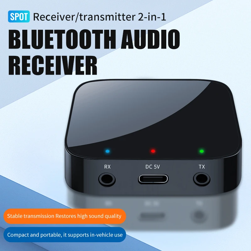 Este producto está configurado para recibir y transmitir, dispositivo Bluetooth dos en uno. Thisproduct es simple, que es capaz de lanzar y recibir toda la señal de audio libremente. A través del modo de recepción Bluetooth puede enviar la música del teléfono al equipo de audio doméstico tradicional, es más conveniente enviar TV, reproductor de CD, MP3 u otras fuentes al altavoz Bluetooth o auricular Bluetooth a través del modo de lanzamiento del producto Bluctooth. Debido a la tecnología de baja latencia del producto también es compatible con la transmisión de sonido en tiempo real de juegos en línea, televisión y películas. Este producto tiene una batería recargable incorporada, que tiene una batería de larga duración. Resuelve perfectamente las limitaciones de los equipos de audio y extiende una variedad de funciones de transferencia de equipos de audio.
