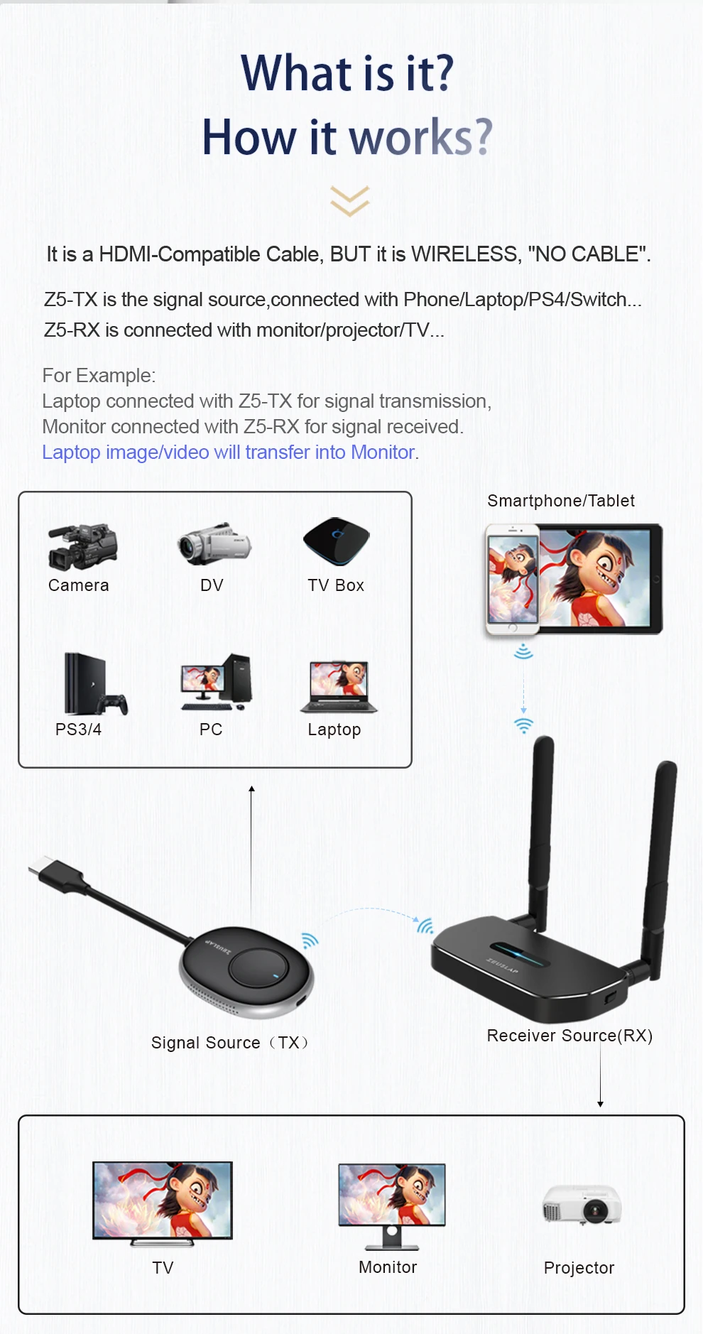 【Plug y Play】Get y funcionando en 20 segundos con un verdadero plug-and-play experiencia Conectar el transmisor a HDMI Compatible con fuente y luego conecte el receptor a la secundaria HDTV-¿Y estás listo para ir? Opera en 802,11 estándar de 5GHz