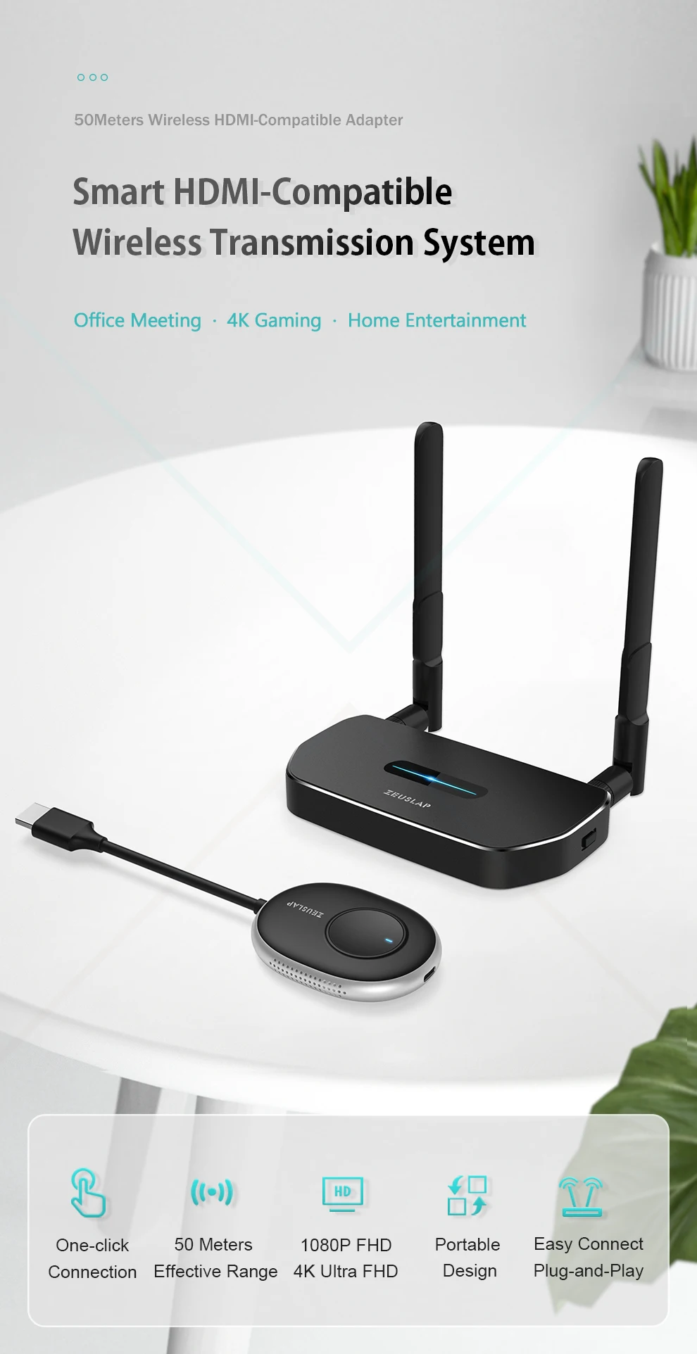 Comprar Transmisor y receptor HD inalámbrico 5G 4K, transmisión Ultra HD, Kit de espejo multidispositivo para PC, teléfono, PS4, Switch, 50 metros