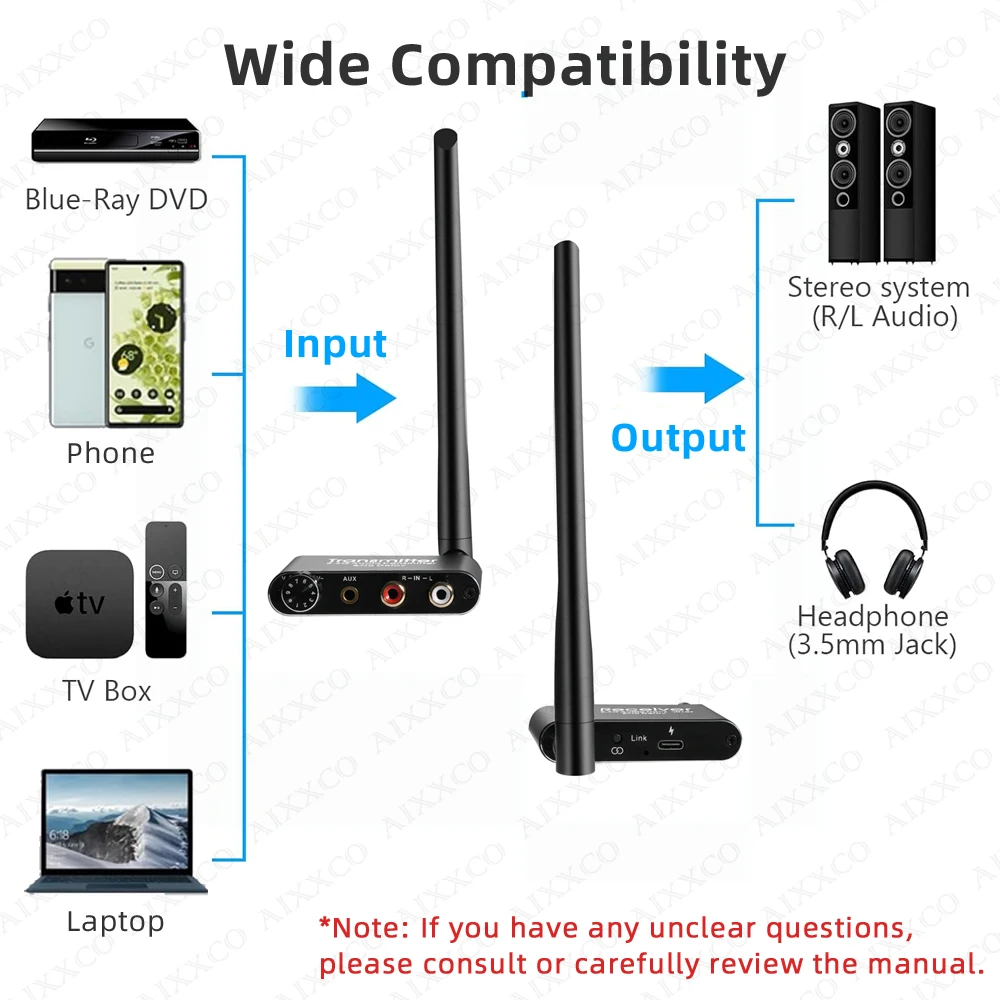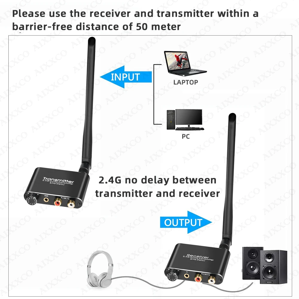 Comprar Transmisor y receptor de música y Audio Wifi inalámbrico, 50M, 2,4G, con adaptador de Audio inalámbrico R/L RCA de 3,5mm para ordenador DVD TV