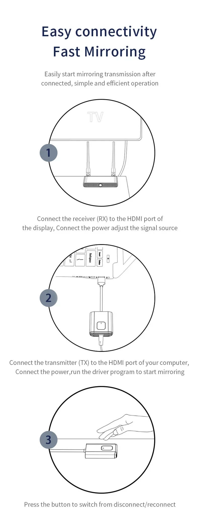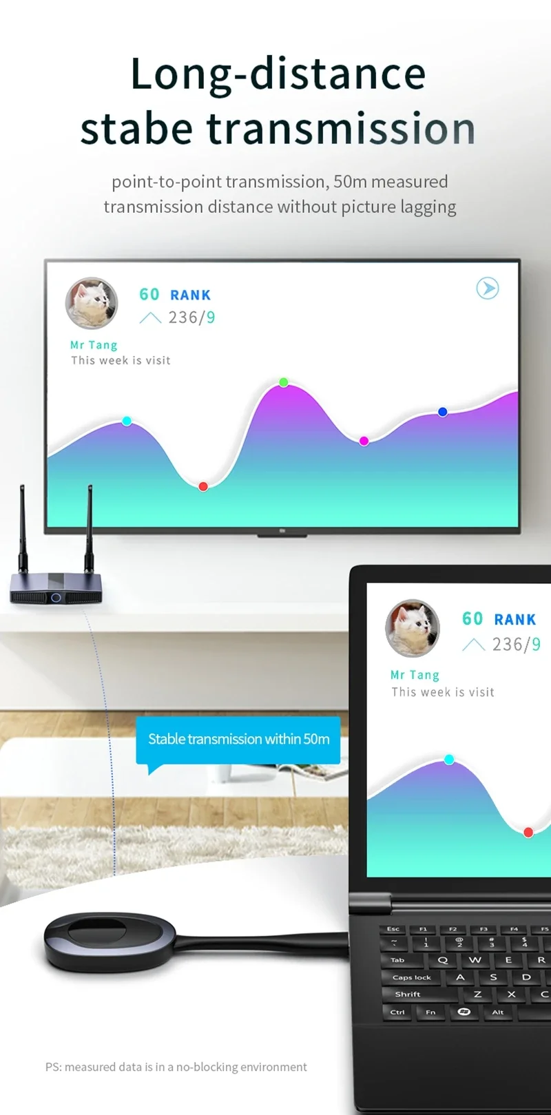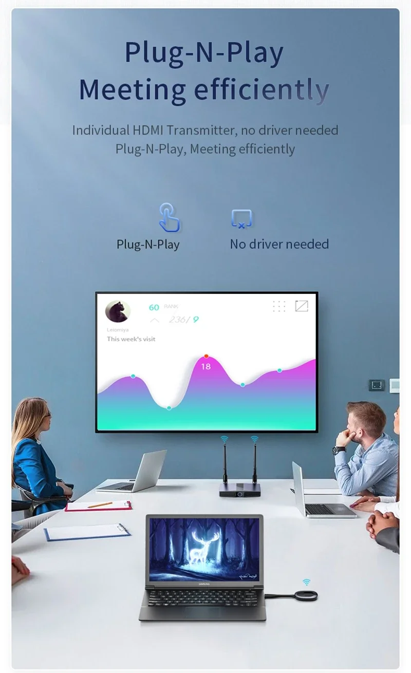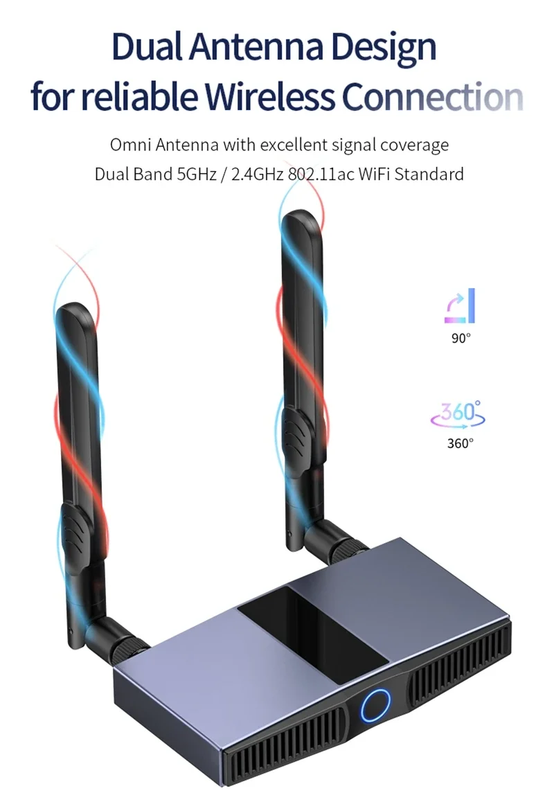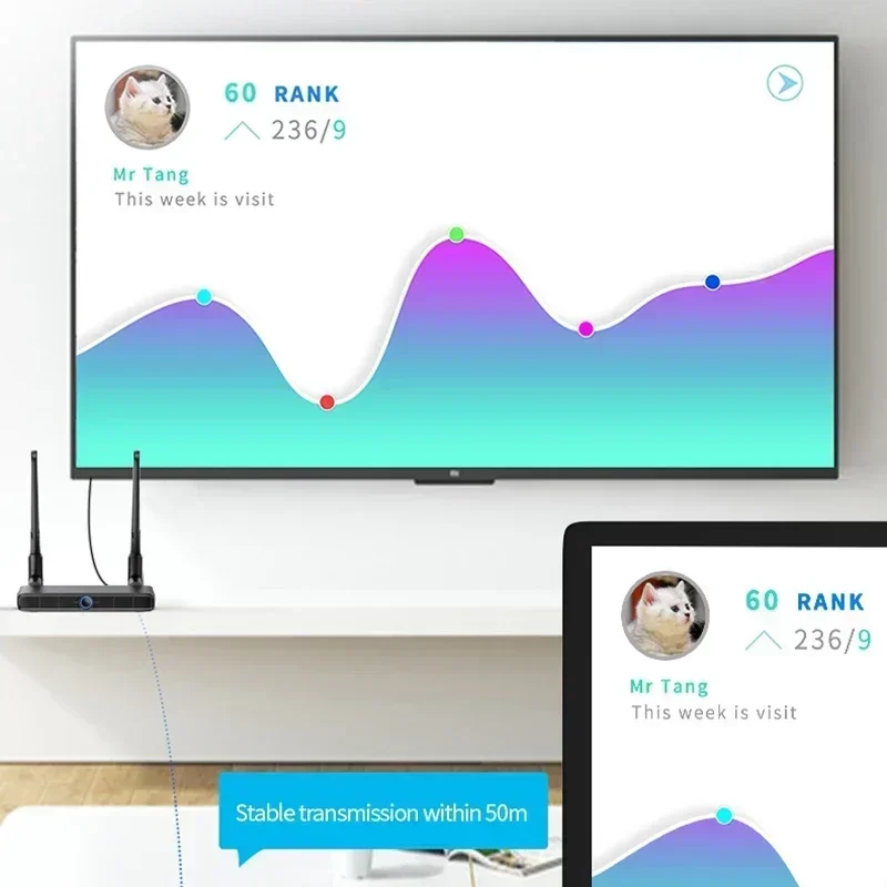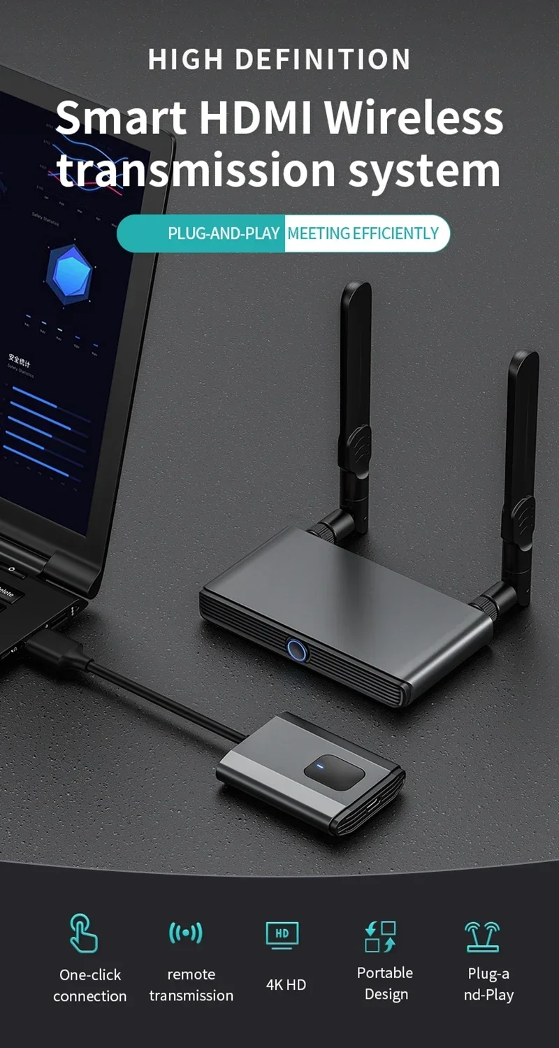 Dispositivos de visualización HDMI) es transmisión inalámbrica, entre TX y RX sin cables HDMI, ahorra costos