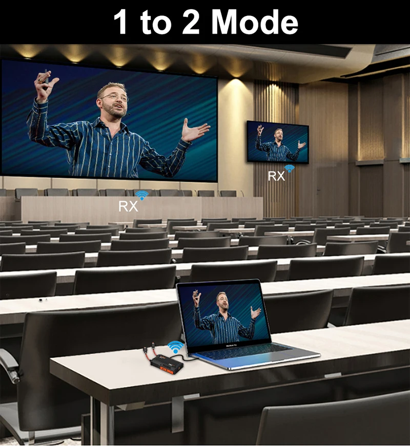 【Salida HDMI local】El TX con puerto de salida compatible con HDMI, puede pasar localmente a través de la fuente de vídeo,