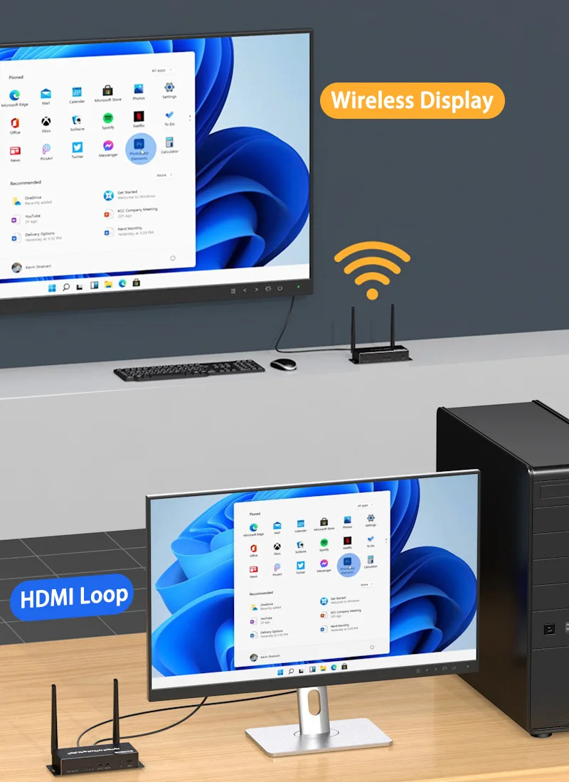 Comprar Transmisor y receptor de vídeo HDMI inalámbrico, extensor KVM, 5G, 4k, bucle, pantalla de 1080P, para cámara de reunión, portátil, PC a TV, HDTV