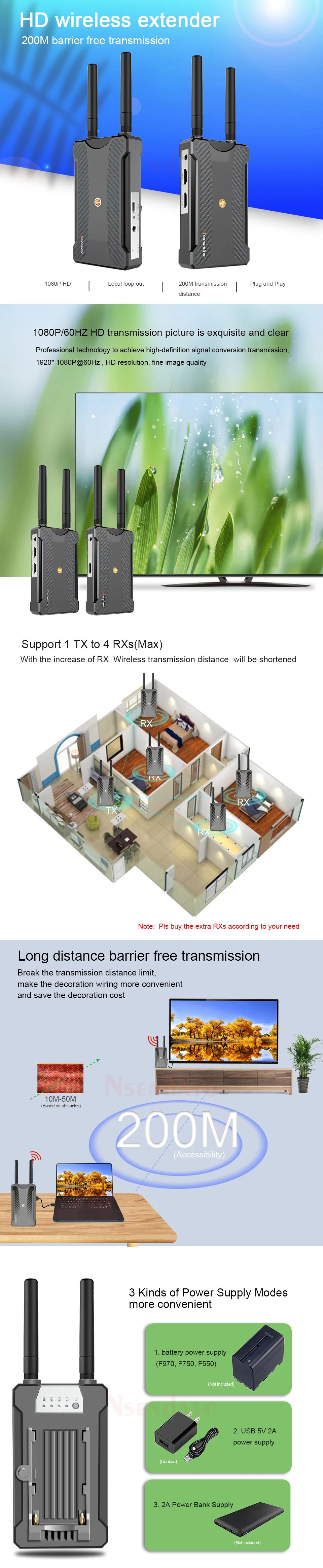 200m Wifi inalámbrico HDMI Compatible con transmisor de vídeo y receptor extensor IR a través de la pared para PS4 TV Box DSLR Cámara PC proyector