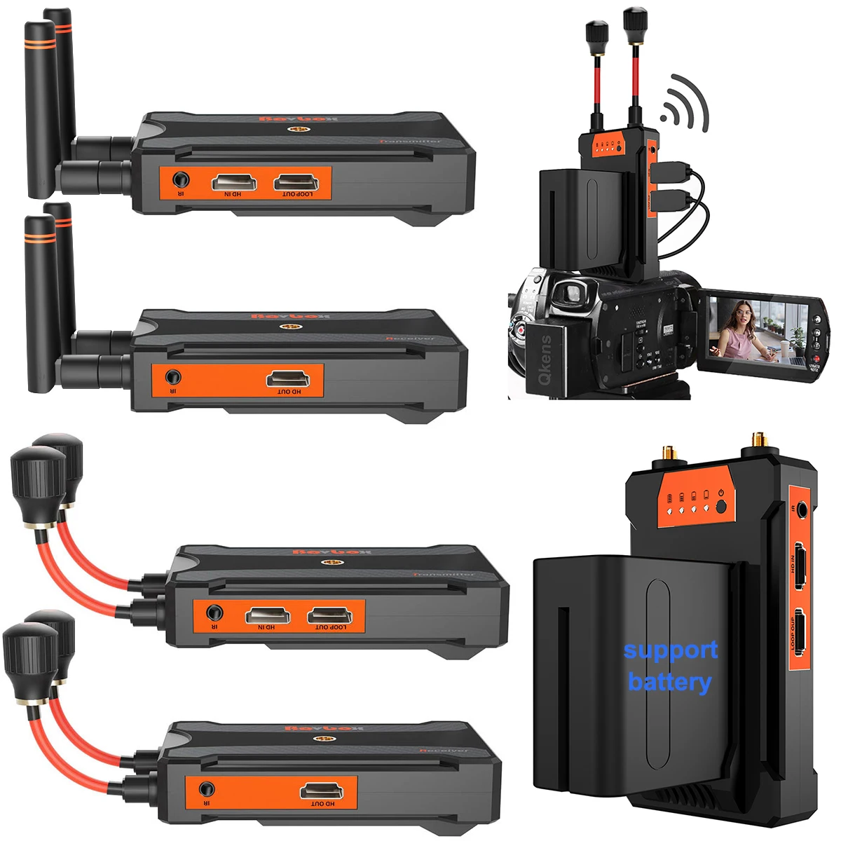 Comprar Transmisor y receptor de vídeo inalámbrico, extensor HDMI de 200M y 300M, pantalla de Audio y vídeo para PS4, cámara, PC a TV, con Base de batería