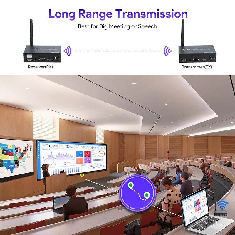 Rompe el límite de distancia de transmisión del cable HDMI, no se necesita instalación complicada de cables ni cables.
