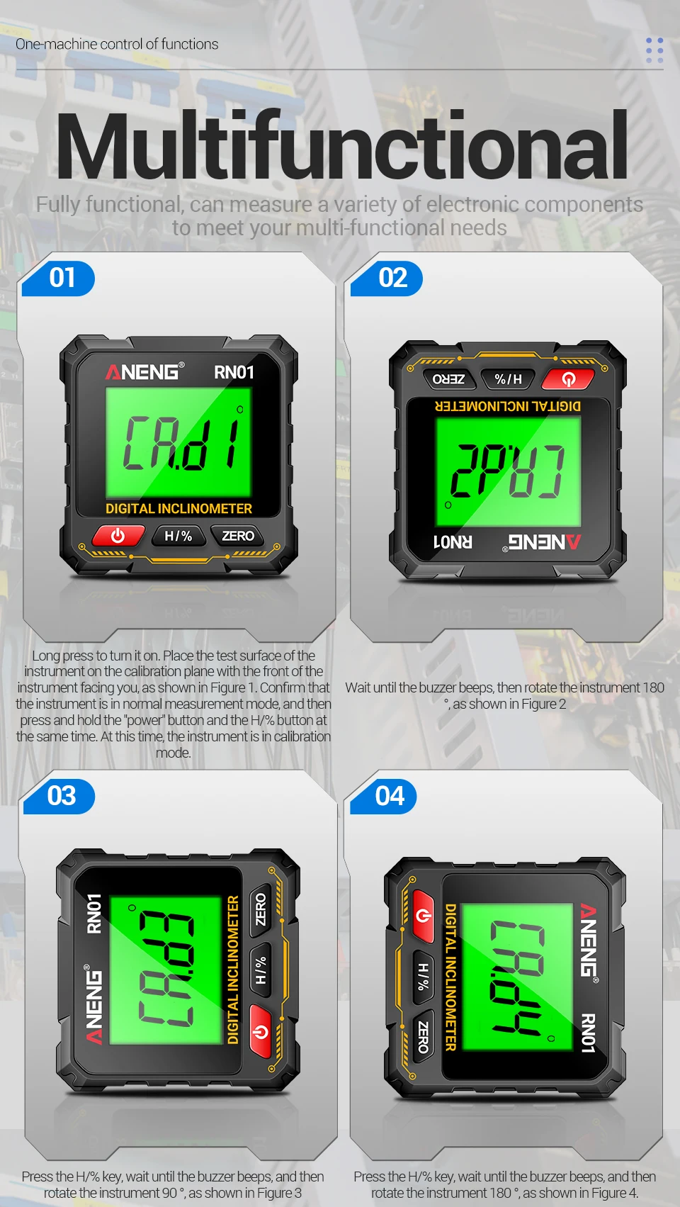 Comprar Transportador de 360 grados ANENG RN01 Mini inclinómetro Digital inteligente herramientas de medición de probador de transportador magnético fuerte de cuatro lados