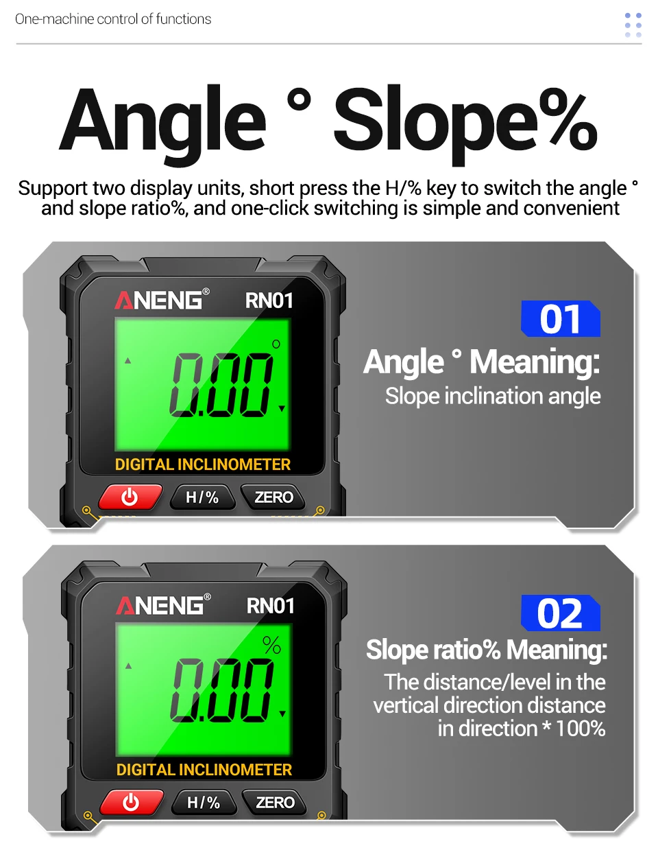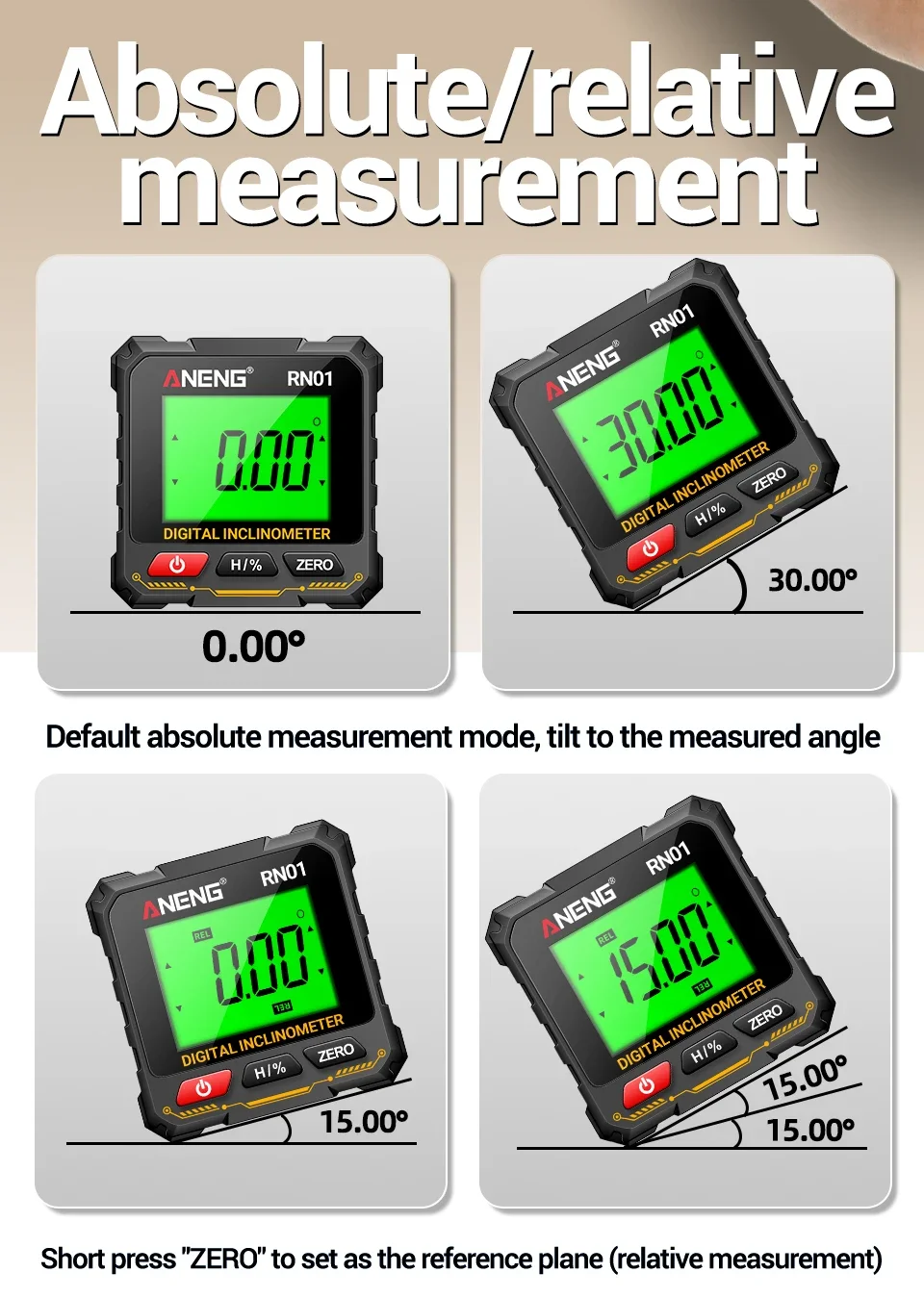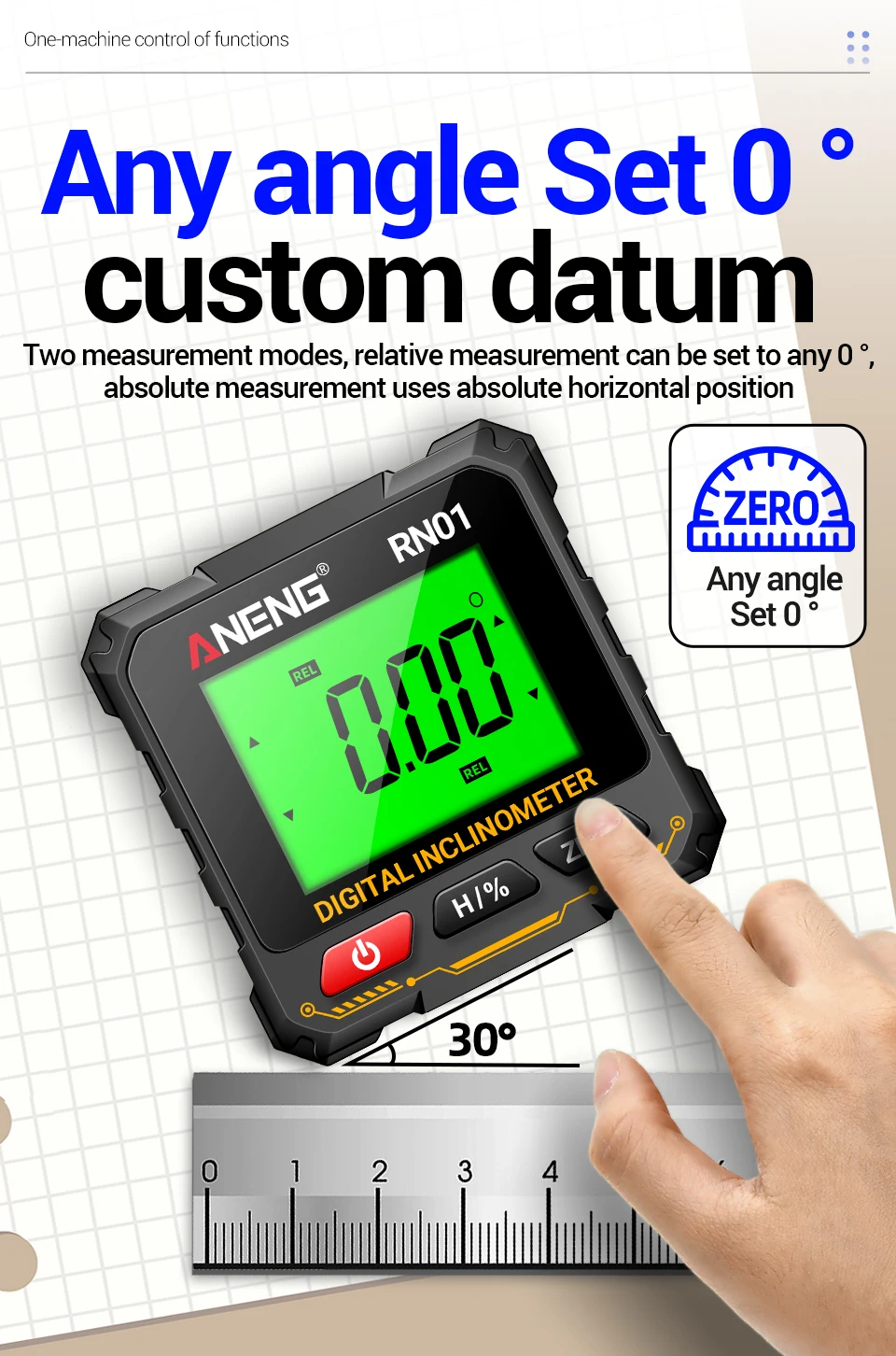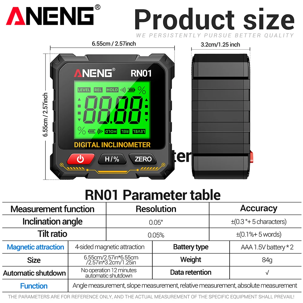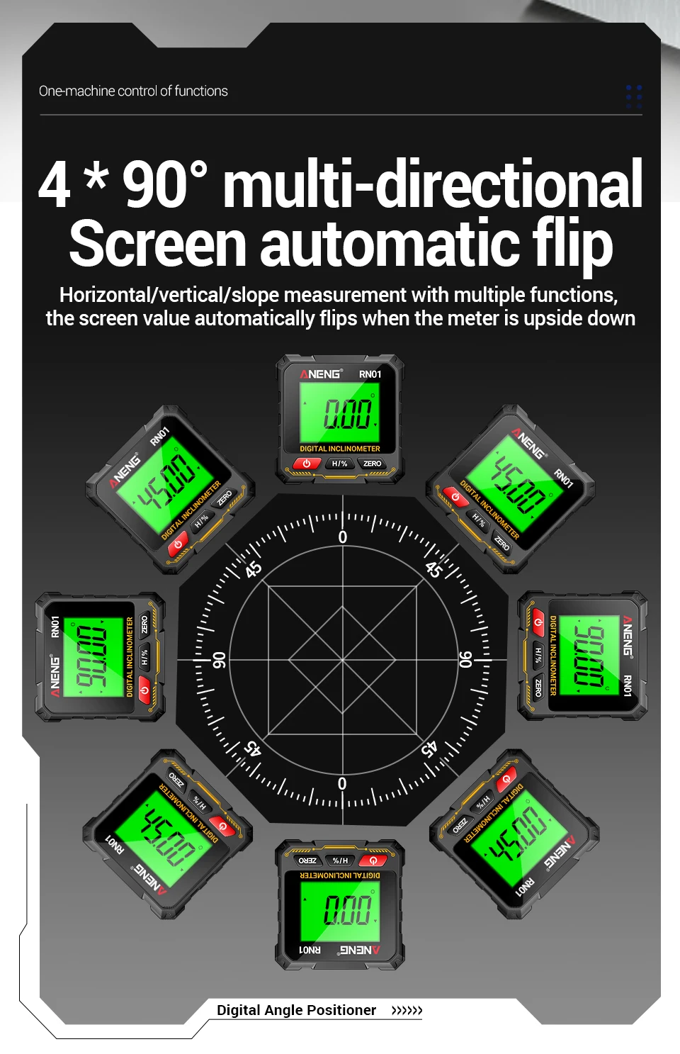 ANENG RN01Mini indicador de ángulo, transportador Digital inteligente, inclinómetro de 360 grados, ángulo/nivel/inclinación, probador magnético fuerte de cuatro lados