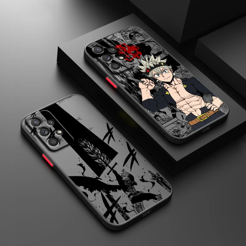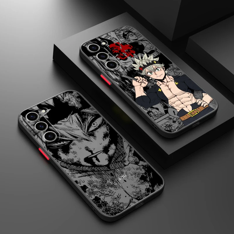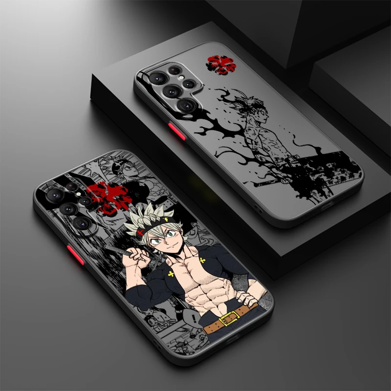 Comprar Trébol negro Anime para Samsung S24 S23 S22 S21 S20 S10 FE Note 20 10 Ultra Lite Plus funda de teléfono translúcida esmerilada