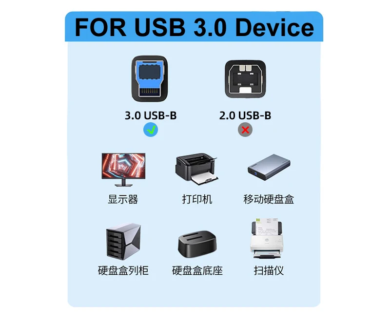 Cable de datos de impresora TYPE-C USB 3.0 de 0,5 M/1 M/2 M/3 M/5 M trenzado de nailon Cable USB-A a USB-B para disco duro portátil HP Scanner HDD