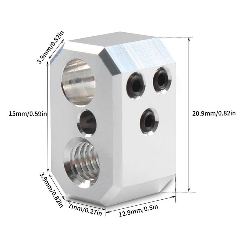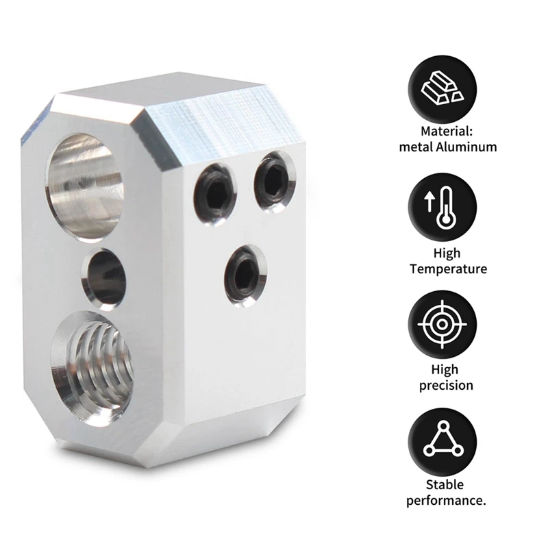 Piezas imprescindibles de repuesto para DIY su proyecto de impresión 3D FDM o MK4 Hot End pieza de reparación: Este es un bloque clonado de aluminio para el ensamblaje Hotend dedicado a impresoras que usan Nextruder. El bloque del calentador del extrusor se completó fácilmente con calentamiento, sensor de temperatura, adaptador de boquilla y boquilla de acero 0,4. Los pernos M3 Adjuntos tienen una unidad Torx (TX6) no hexagonal, por lo que debe usar la herramienta adecuada. El paquete incluye: solo un bloque calefactor de aluminio y pernos M3 cerrados, pero no viene con un calcetín de silicona. Alta temperatura, alta precisión, rendimiento estable.