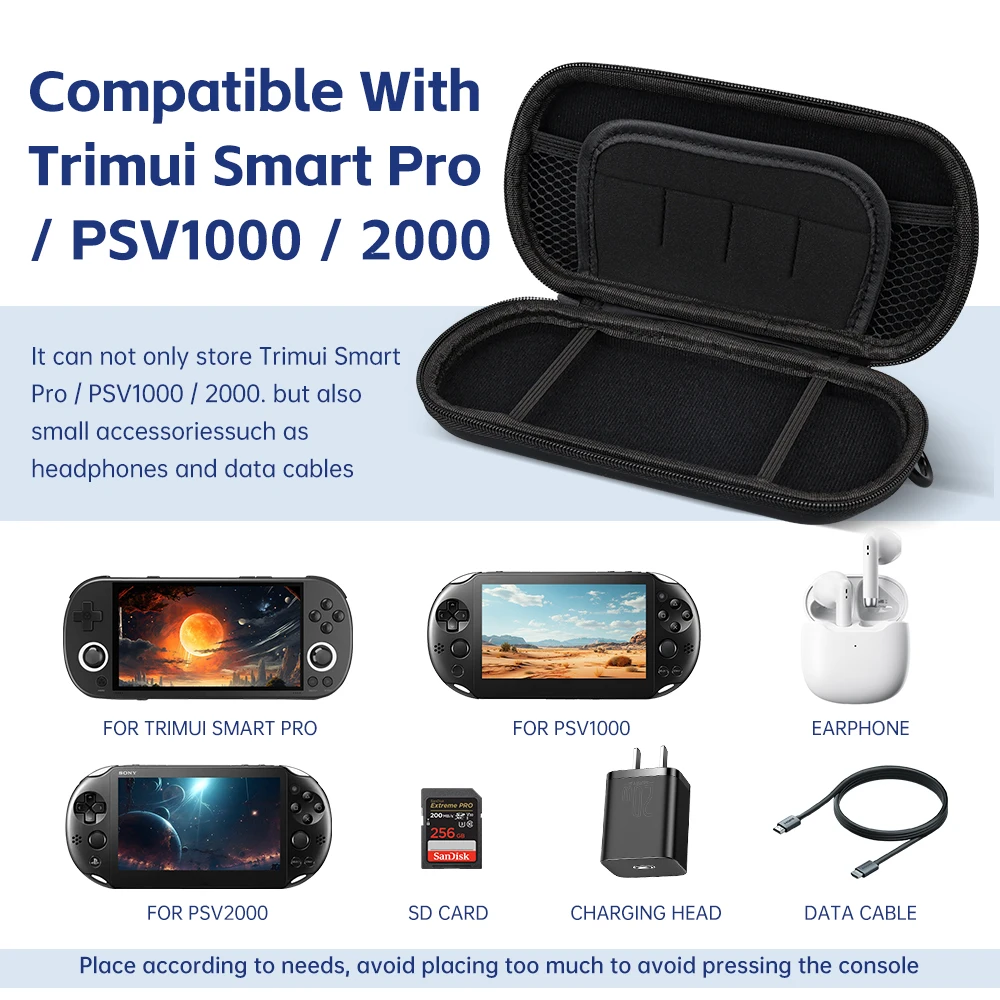 Este estuche de transporte de PU duro no solo está hecho a medida para la consola de juegos portátil TRIMUI Smart Pro, sino también para la PSV1000 / PSV 2000, asegurando un ajuste perfecto y protegiendo con precisión su dispositivo de arañazos, golpes y daños cotidianos.