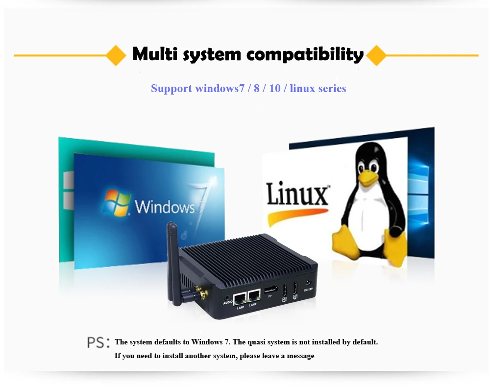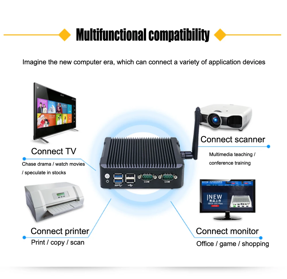 Comprar TripleHead-Mini PC sin ventilador con DP, 2 x HDMI, 2 x COM o 1 X COM, Intel, Quad Core, N3700, TV BOX, win7/10, Linux, HTPC