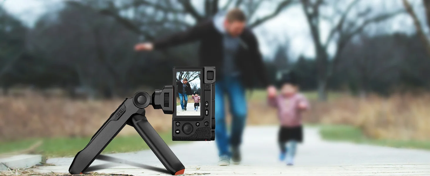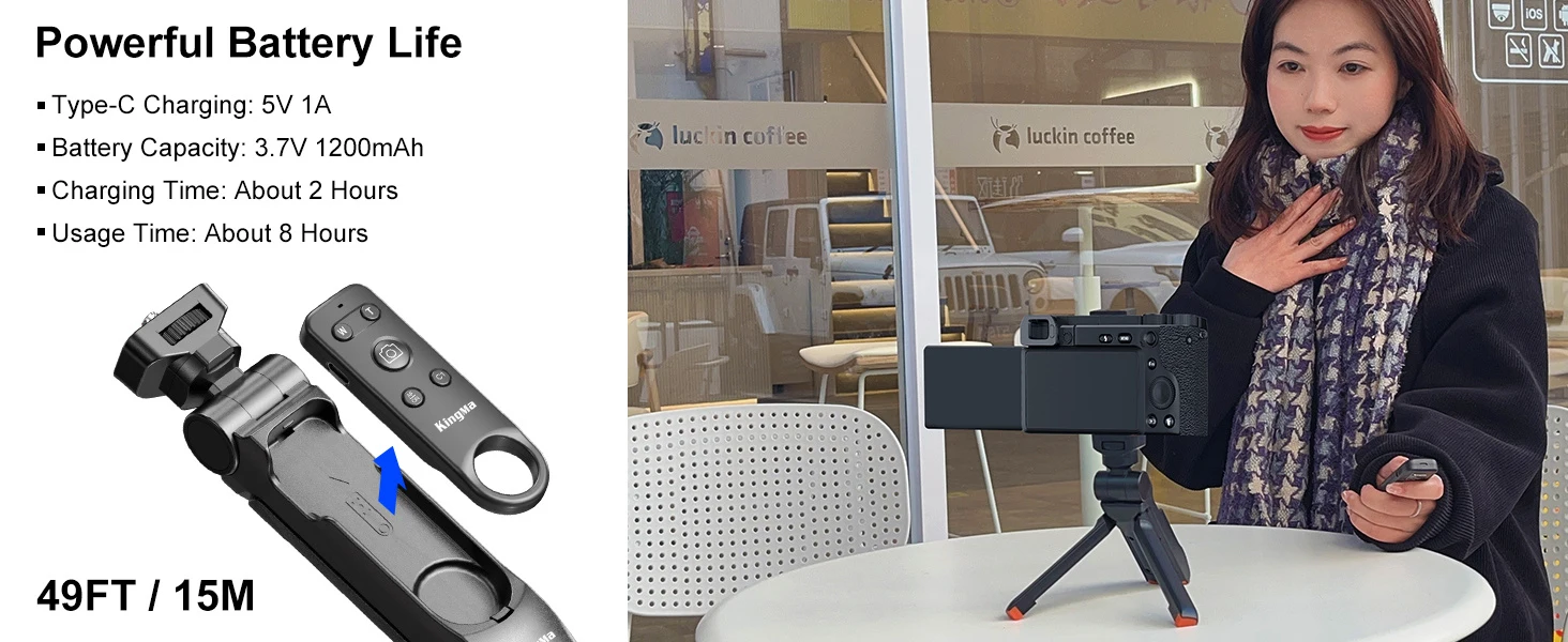 El agarre Bluetooth mejorado le permite encender/apagar, tomar fotos, iniciar/detener video y ampliar desde una distancia de hasta 49 pies.Perfecto para viajes, deportes, camping, senderismo, esquí, transmisión en vivo, vlogging y creación de contenido de escritorio.
