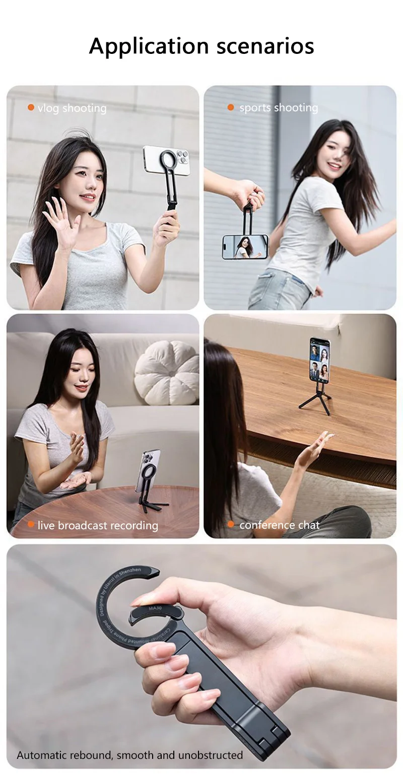 Trípode de teléfono de aleación con mosquetón, trípode magnético de doble cara, soporte de escritorio, soporte para mango de teléfono para iPhone Huawei Xiaomi NUEVO 2025