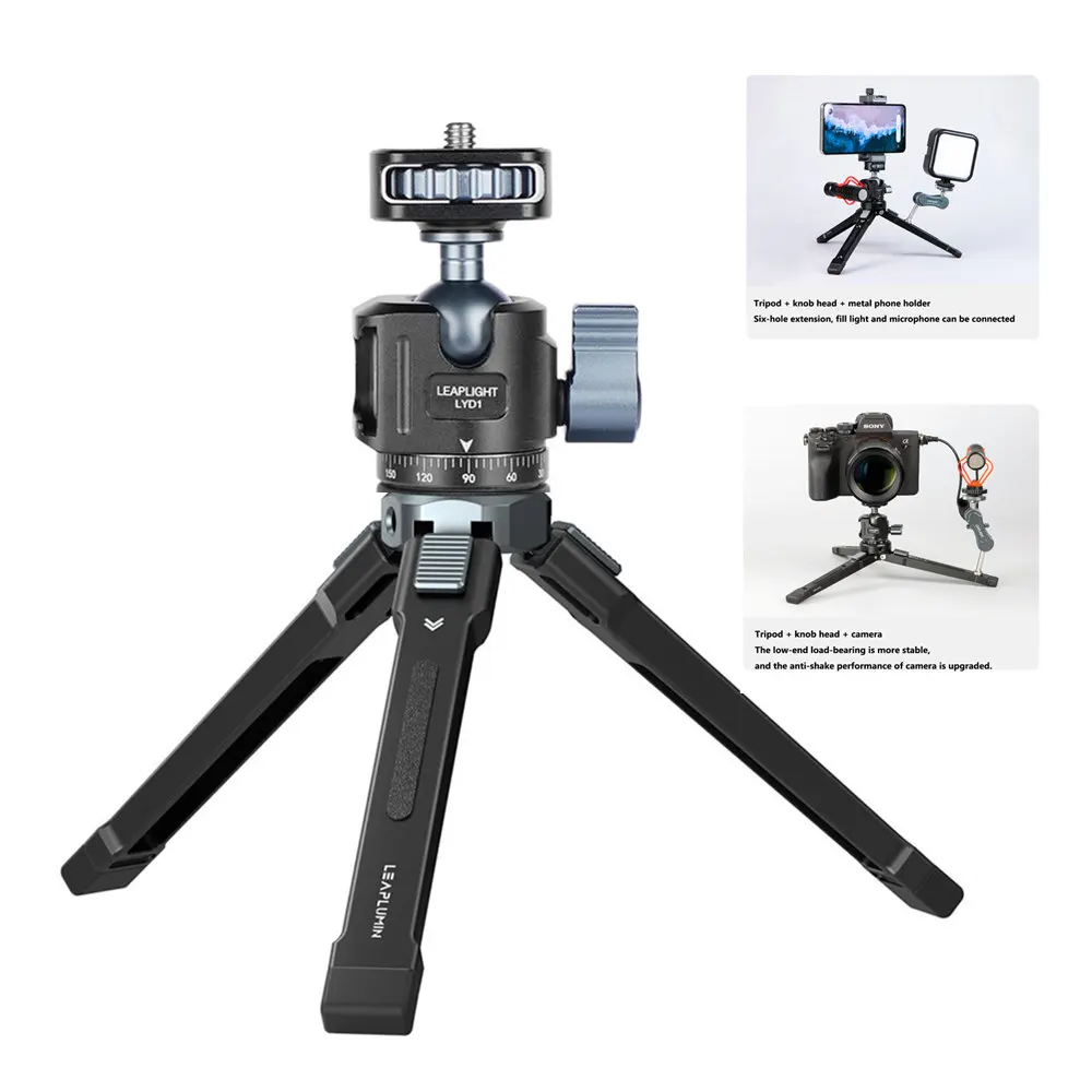 Mini trípode para cámara/teléfono/cámara web trípode de escritorio portátil con rosca de 1/4 pulgadas trípode compacto de aleación de aluminio adecuado para cámara Gimbal DSLR videocámara carga máxima 8kg/17.63lb
