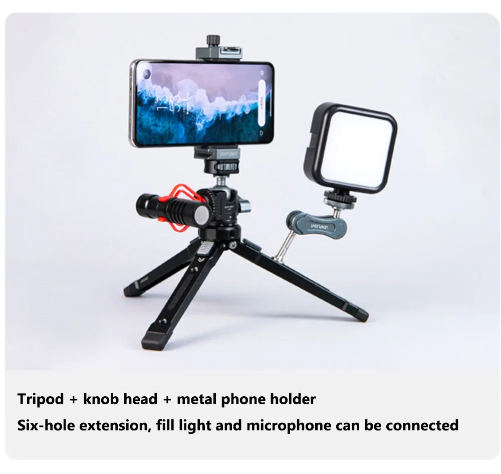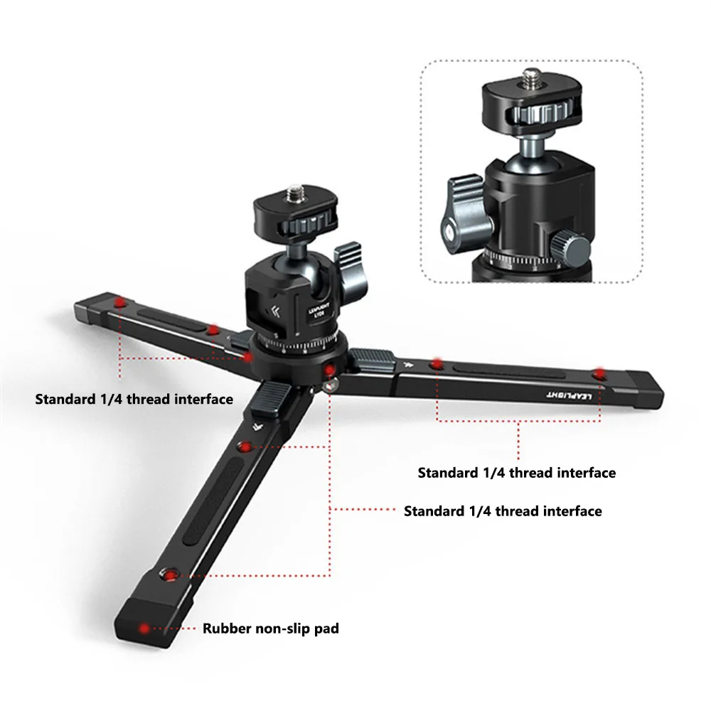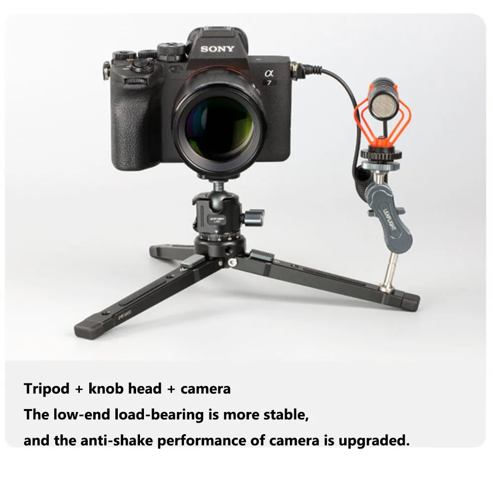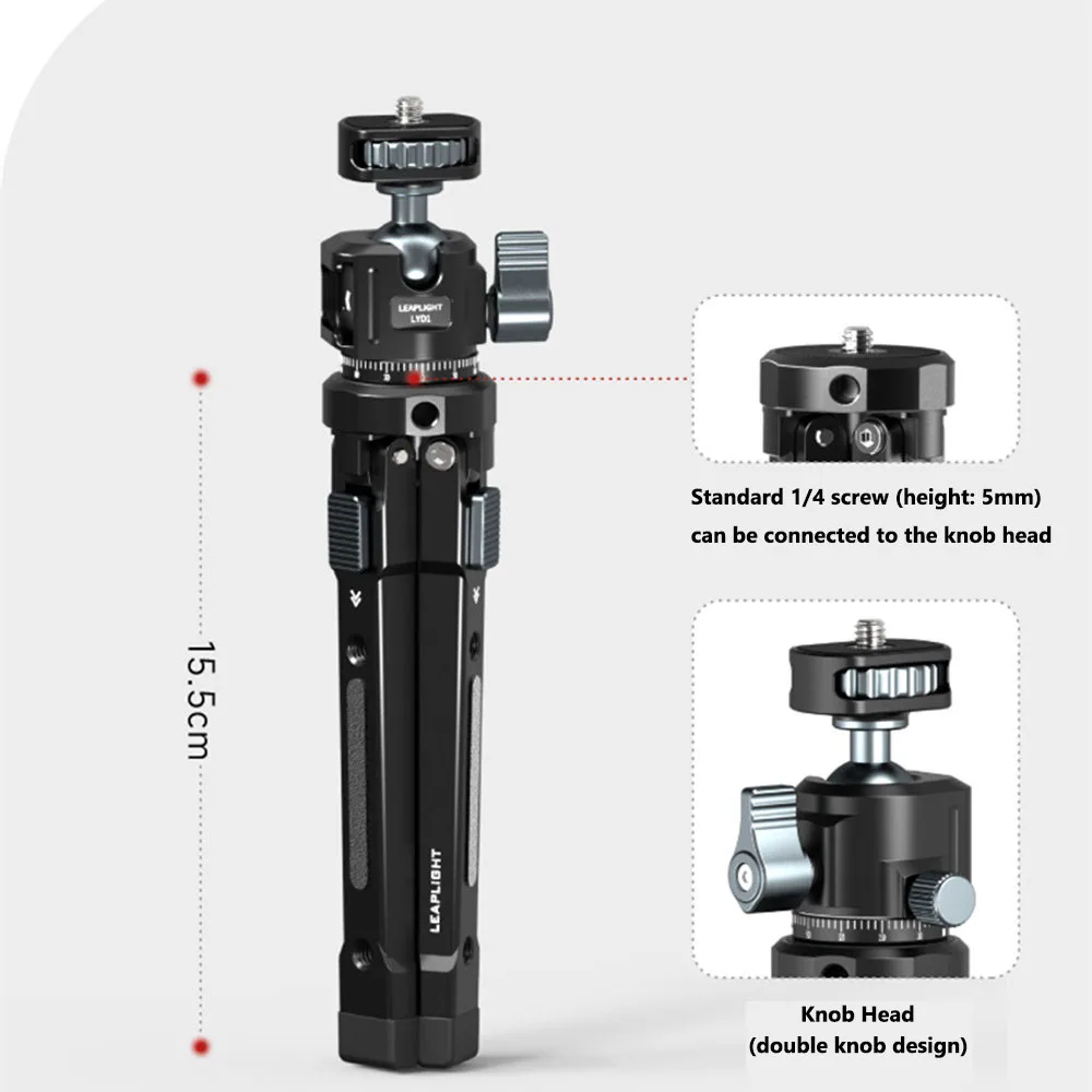 El mini trípode cuenta con un tornillo de cabeza hembra adicional de 1/4 ''que permite la fijación de varios accesorios como brazos mágicos, micrófonos o luces de relleno