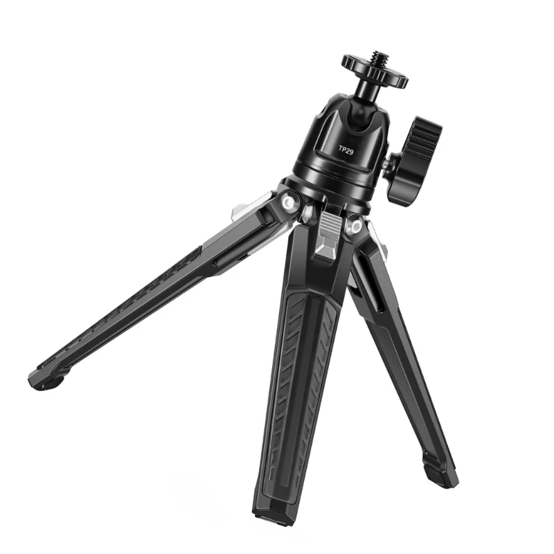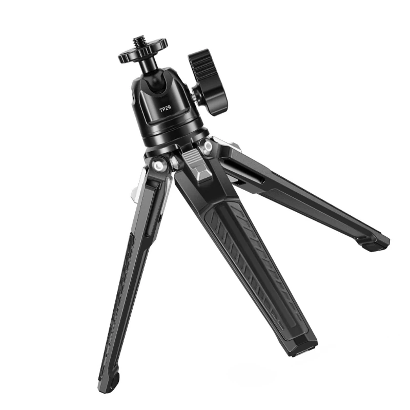 El cabezal del trípode con tornillo universal de 1/4 de pulgada se fija a cámaras, videocámaras, soportes para teléfonos móviles, luces de vídeo y soportes para micrófonos.