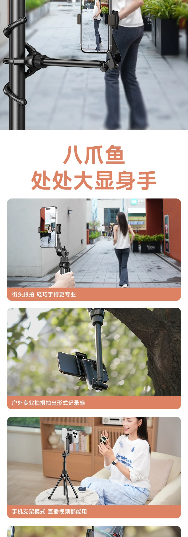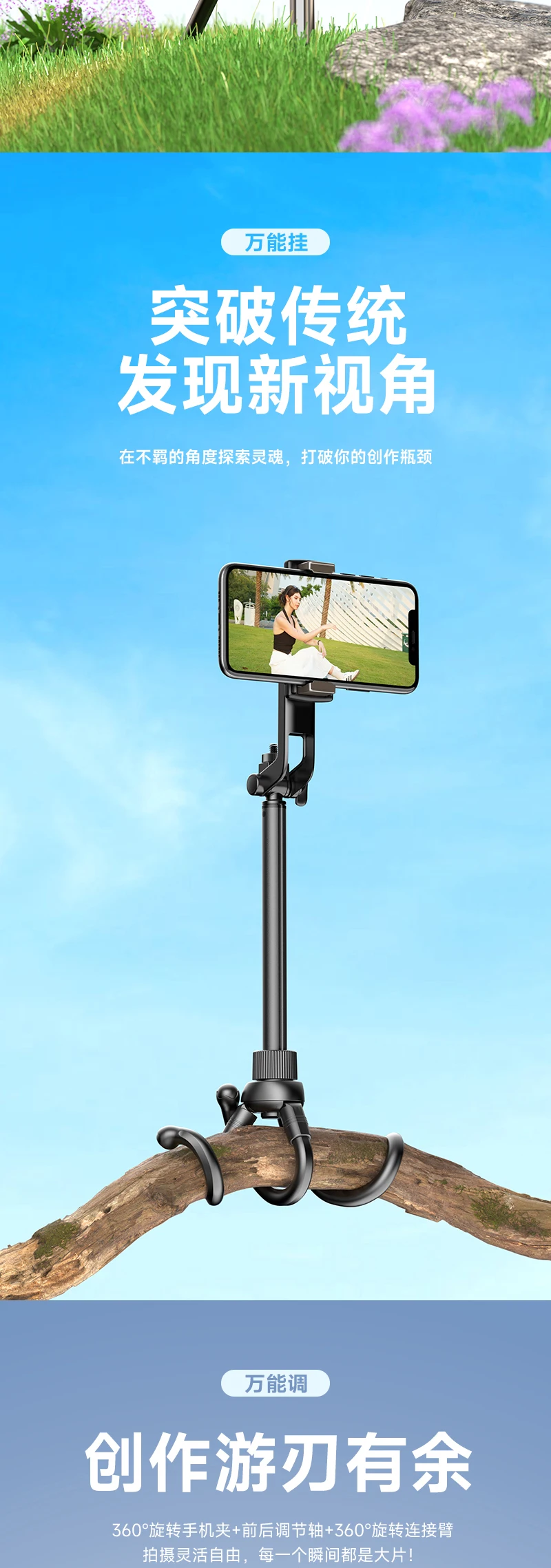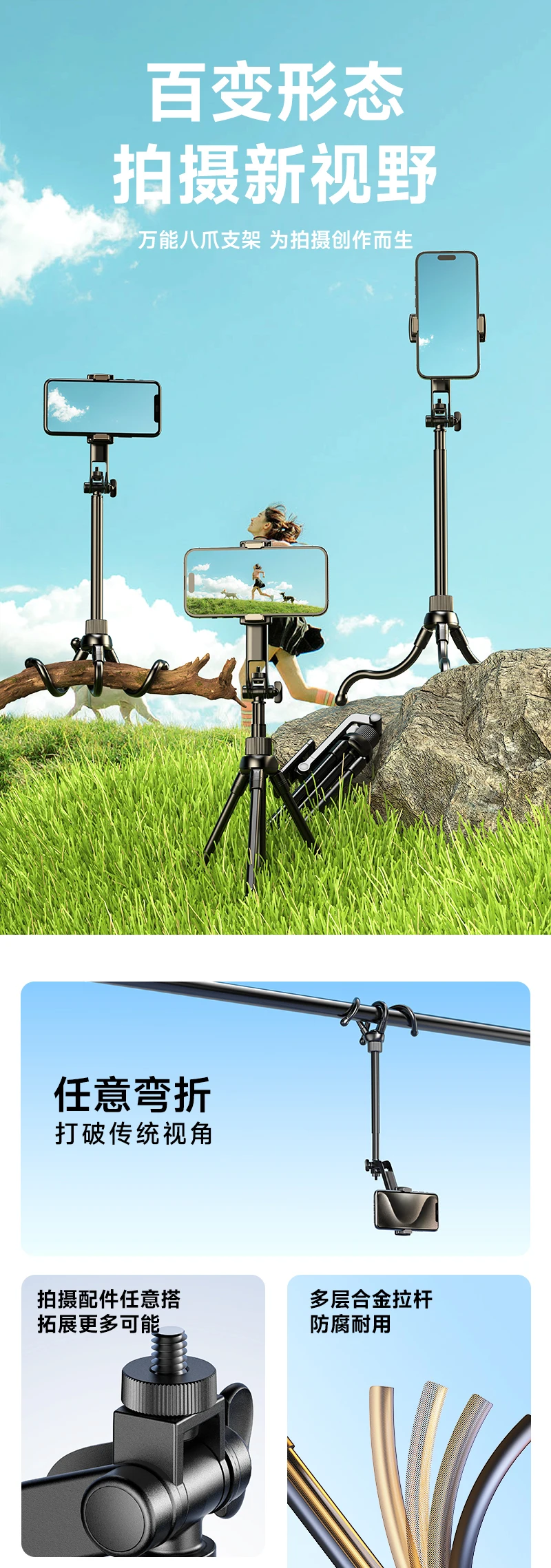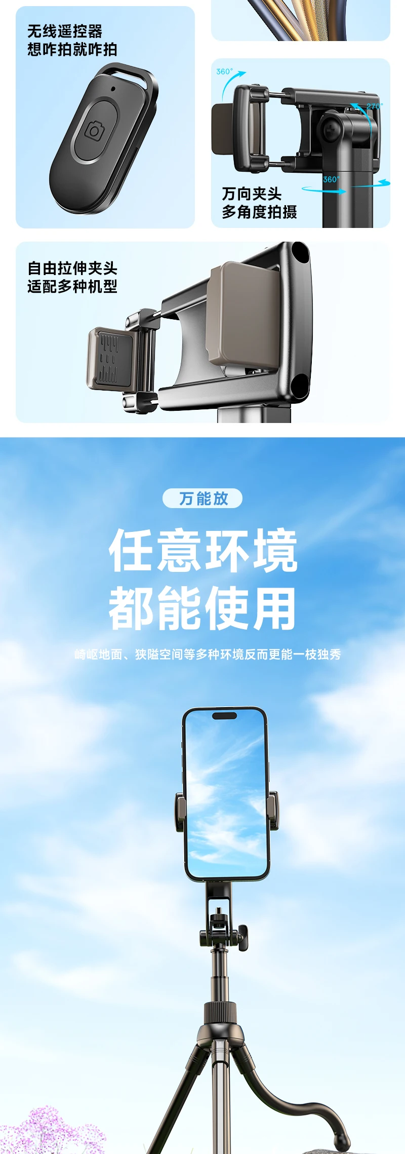 Trípode de pulpo Flexible soporte extensible para palo de Selfie con control remoto inalámbrico Bluetooth para IPhone Samsung Android teléfono monopié