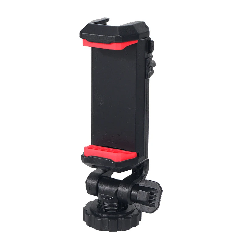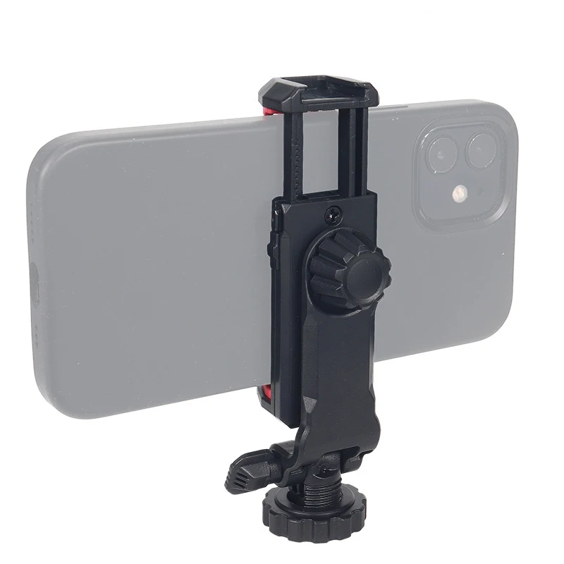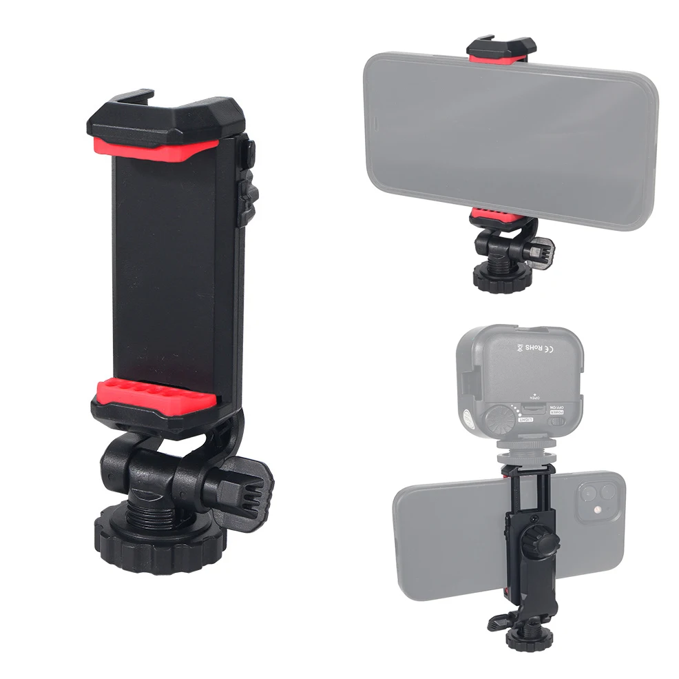 La abrazadera de teléfono giratoria de 360 grados para disparos horizontales y verticales, ajuste de inclinación hacia adelante y hacia atrás también está disponible.