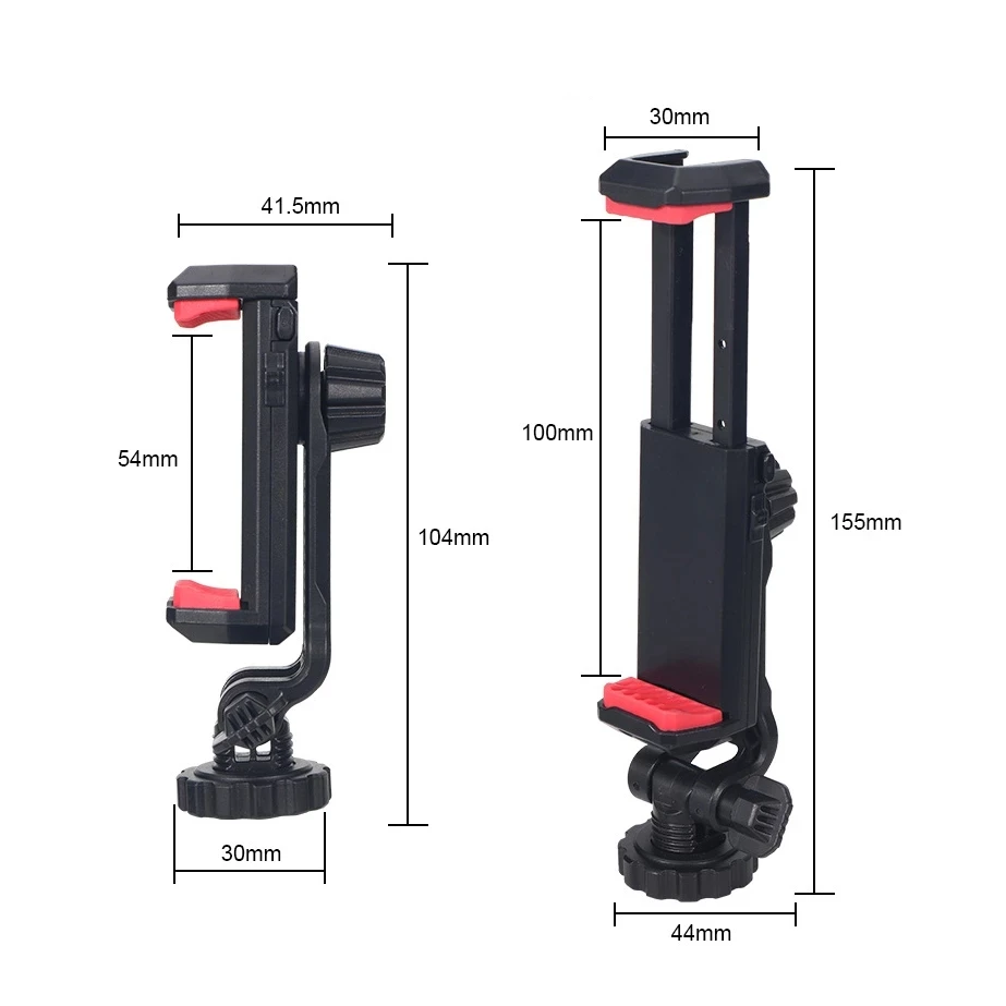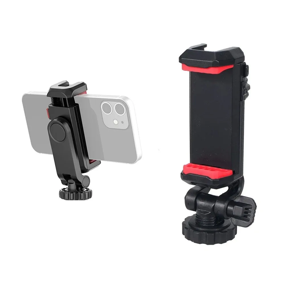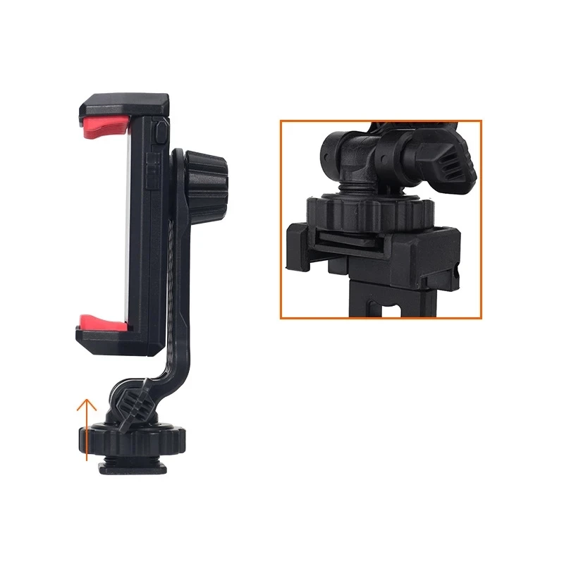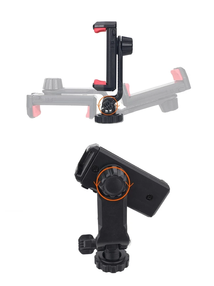 La abrazadera de teléfono giratoria de 360 grados para disparos horizontales y verticales, ajuste de inclinación hacia adelante y hacia atrás también está disponible.