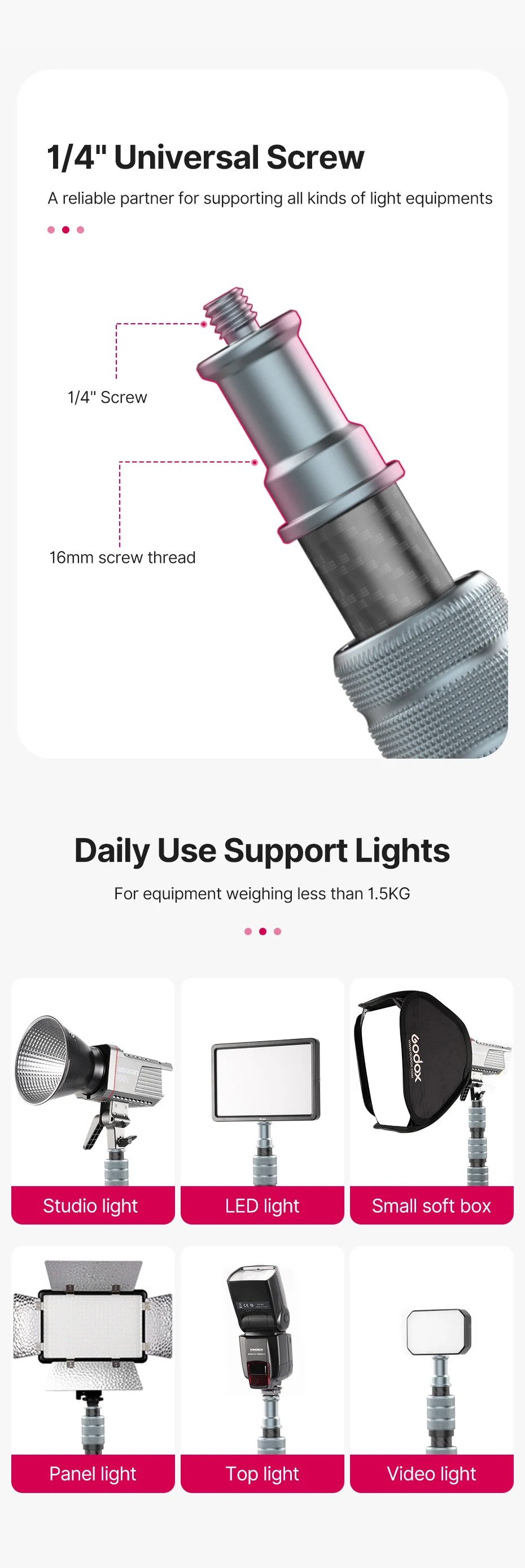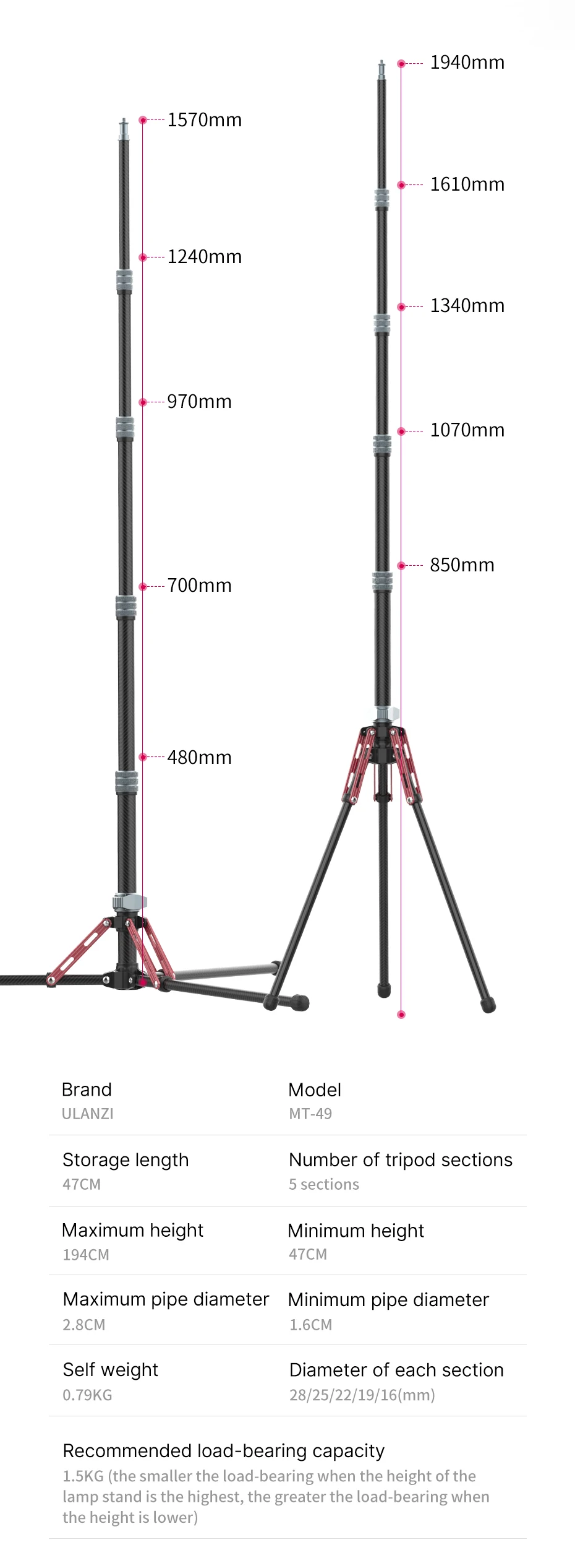 Capacidad de carga recomendada: 1,5 KG (cuanto menor sea la carga cuando la altura del soporte de la lámpara sea mayor, mayor será la carga cuando la altura es menor)