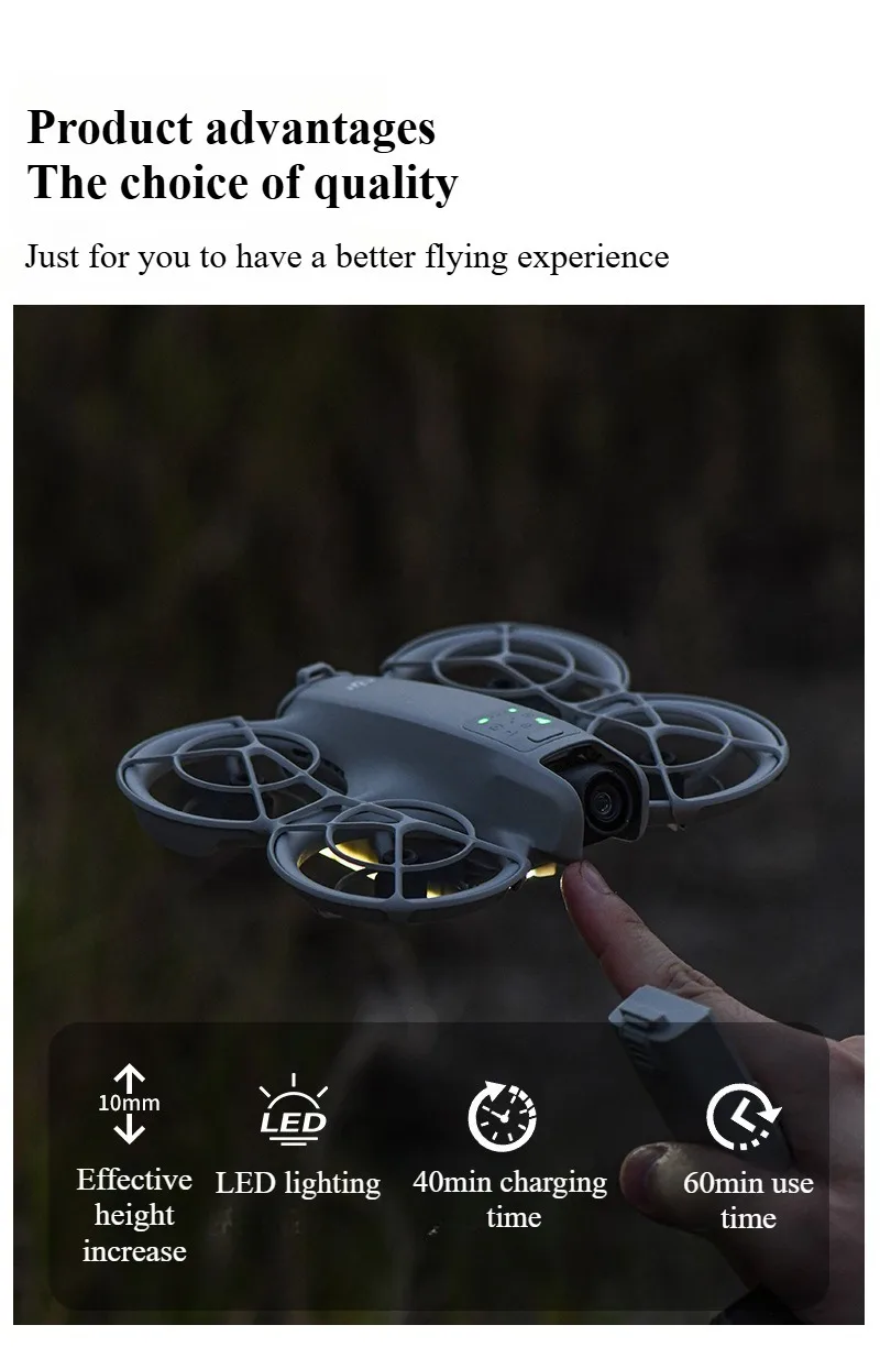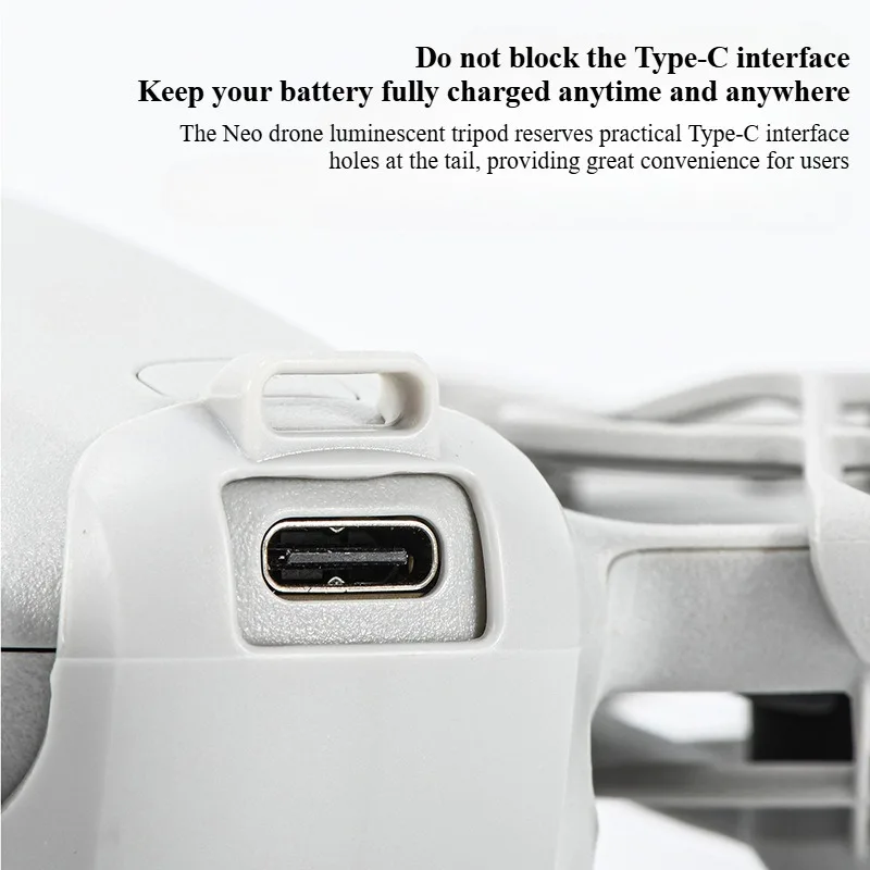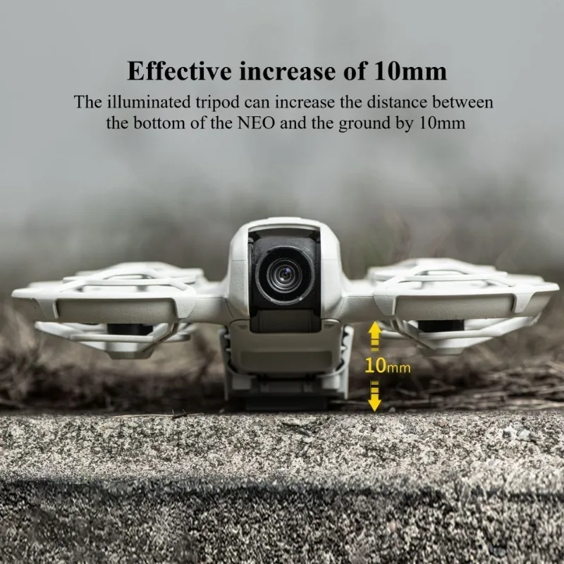 2, el trípode luminoso puede aumentar la distancia entre la parte inferior del FOR DJI NEO y el suelo en 10 mm, lo que puede reducir el impacto durante el aterrizaje y también proteger la batería para brindar una protección de aterrizaje segura.