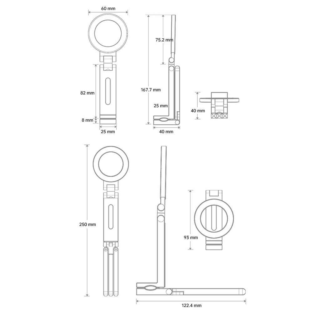 Magnetic Tripod 360 Adjustable Clip Folding Magnetic Phone Stand Aluminium Mini Magnetic Phone Tripod for iPhone & for MagSafes