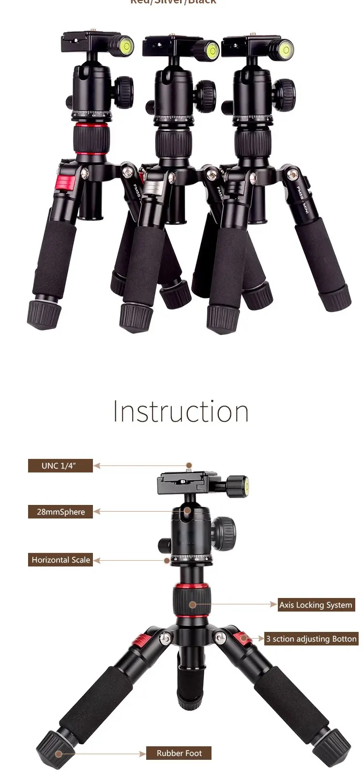 El trípode coincide absolutamente con la descripción y funciona de maravilla. Recomiendo al vendedor.