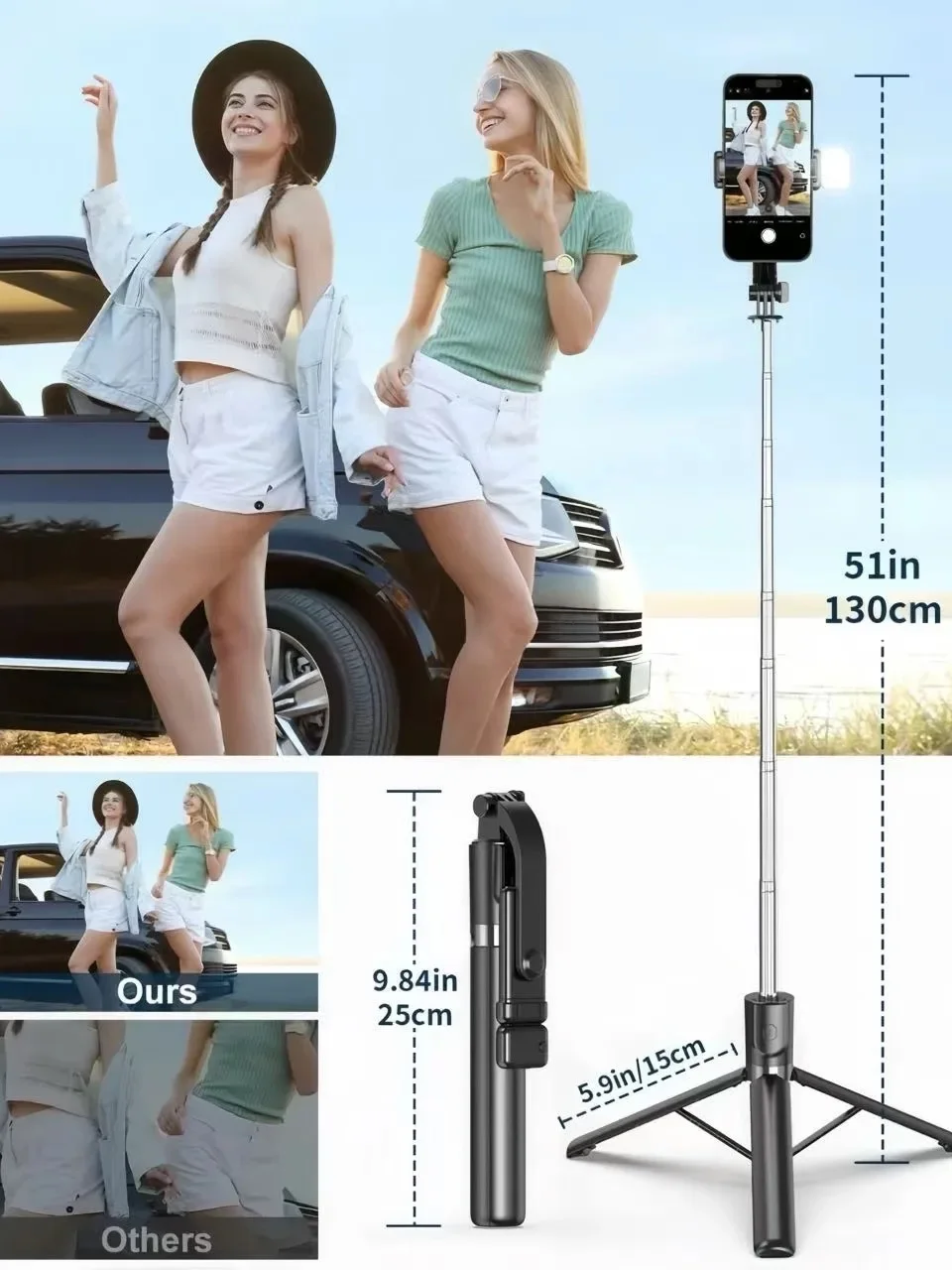 Trípode portátil para selfies con luz de relleno de belleza ajustable, Control remoto por Bluetooth, adecuado para Apple y iPhone Soporte para teléfono