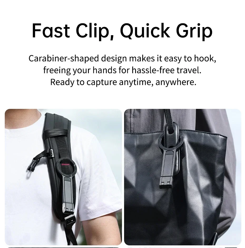 Diseño de agarre y clip rápido: con un diseño único en forma de mosquetón, este trípode para teléfono permite viajar sin problemas.Simplemente colóquelo en su bolso, liberando sus manos para que pueda estar listo para capturar fotografías impresionantes en cualquier momento y en cualquier lugar.