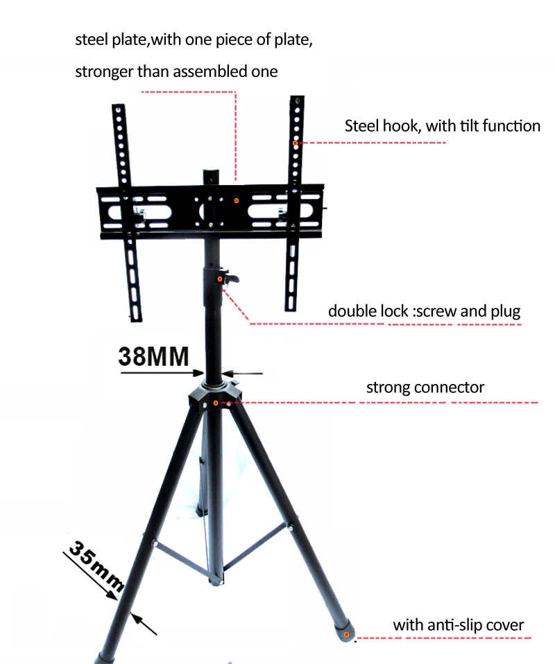 Comprar Trípode Universal de 14-55 pulgadas para tv LCD, soporte de suelo con altura ajustable, inclinación de 50kg, VESA 400x400, 300x300, con carrito para monitor, nuevo, DLS-12MT