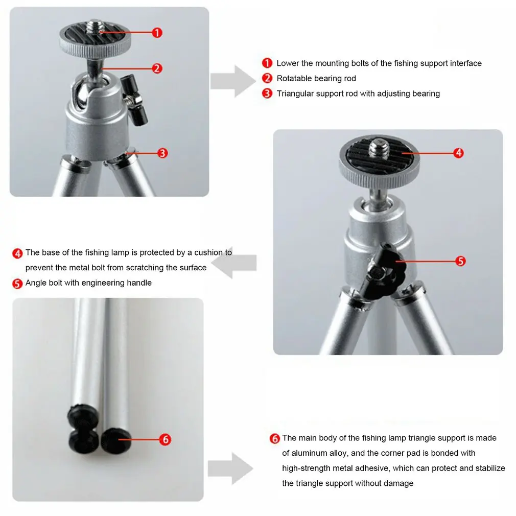 5. Base de goma: permite que su trípode agarre su escritorio y no dañe la parte superior del escritorio.