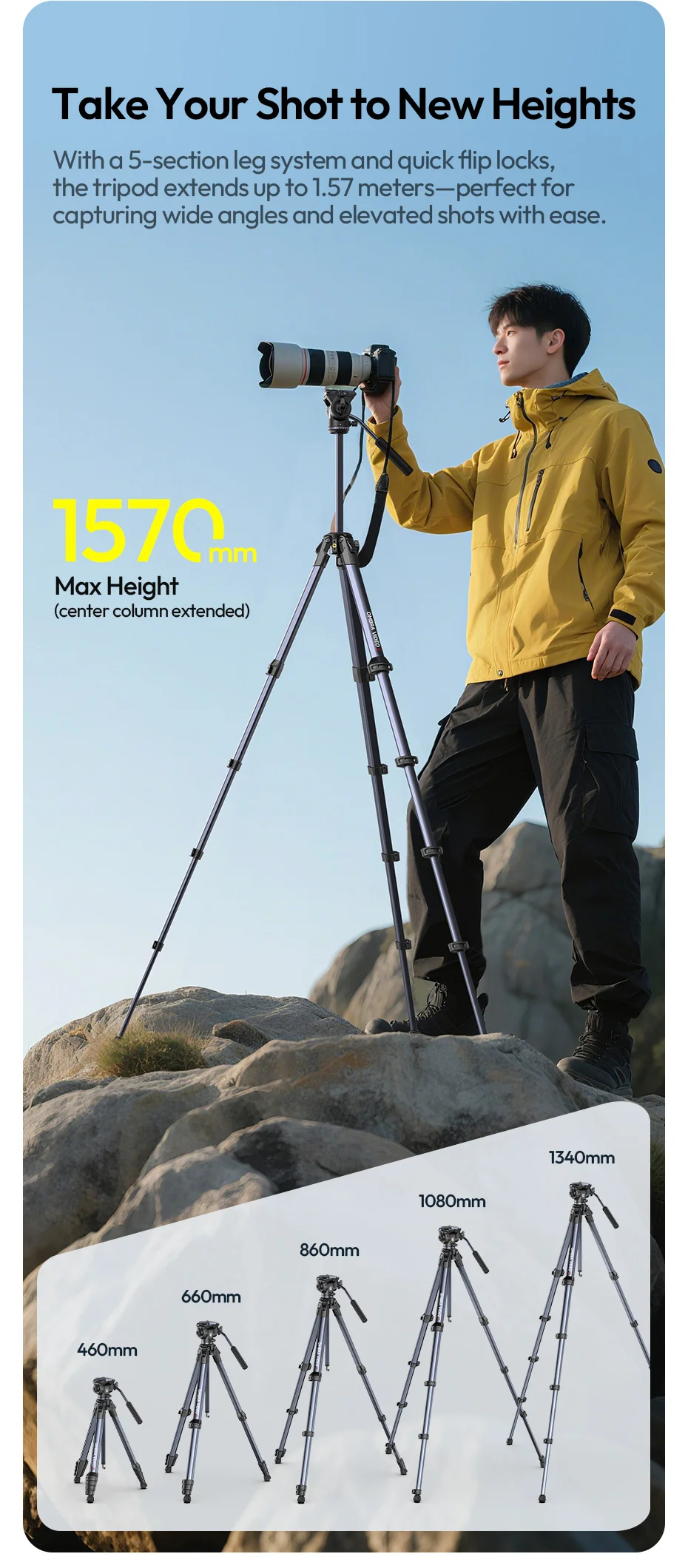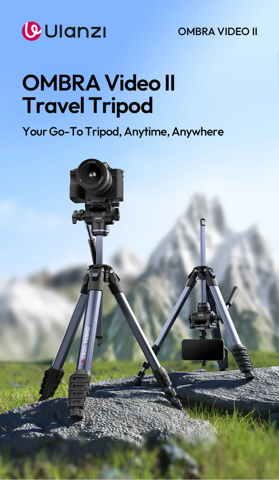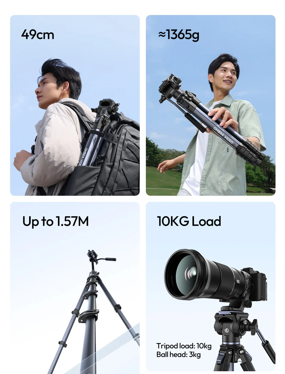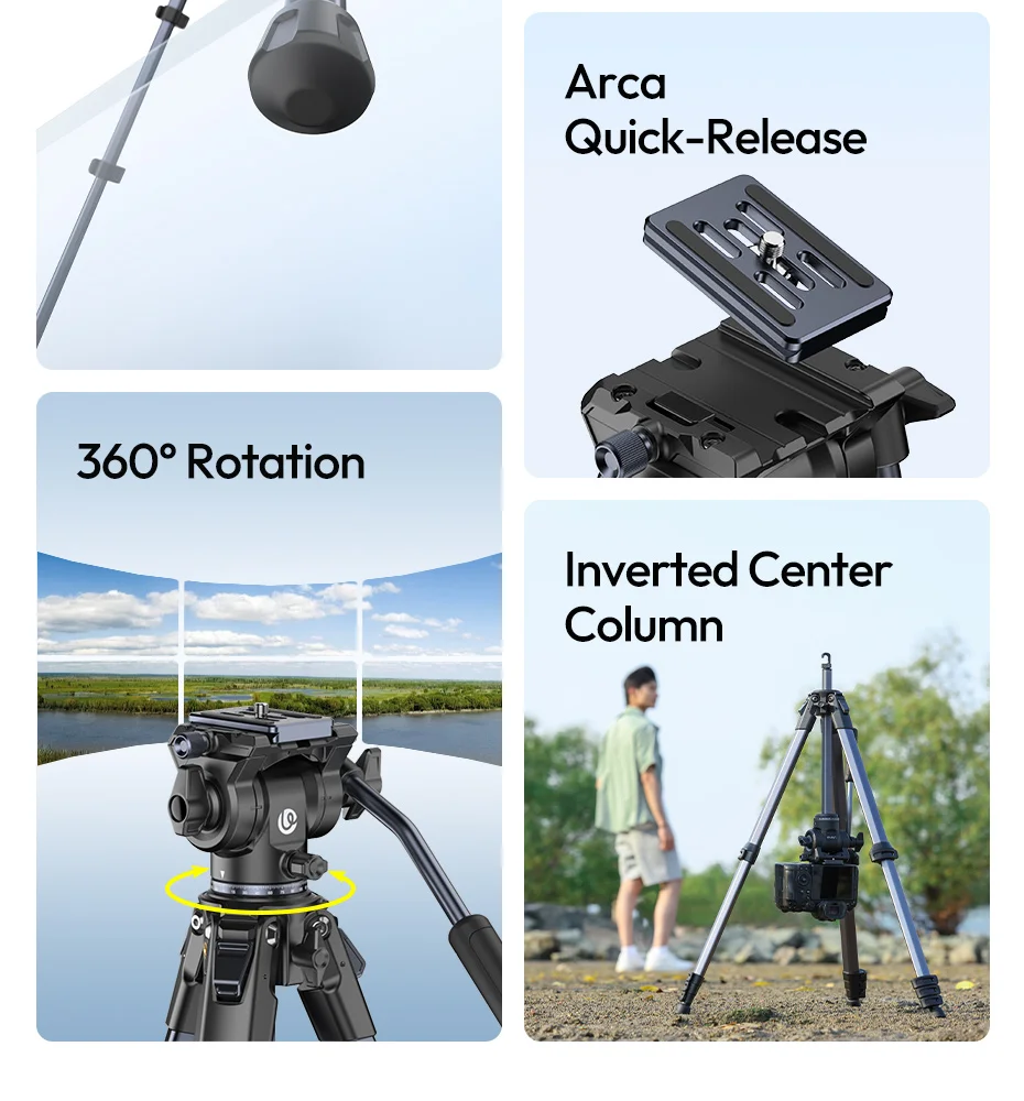 Trípode de viaje Ulanzi OMBRA VIDEO II de 1,57 M con 360 ° Soporte de trípode para cámara de liberación rápida Arca con cabezal esférico panorámico Sesión de ángulo bajo