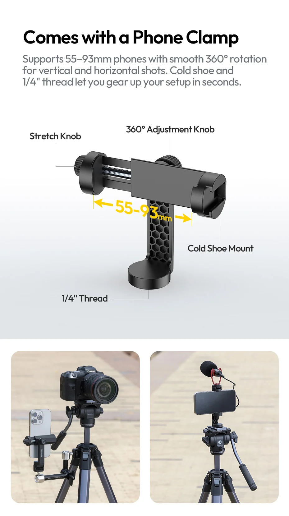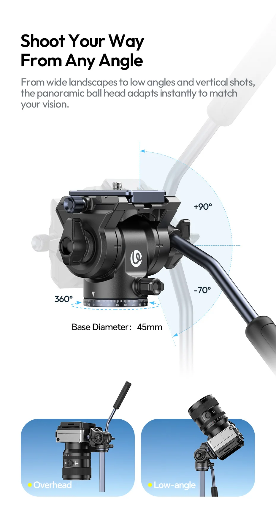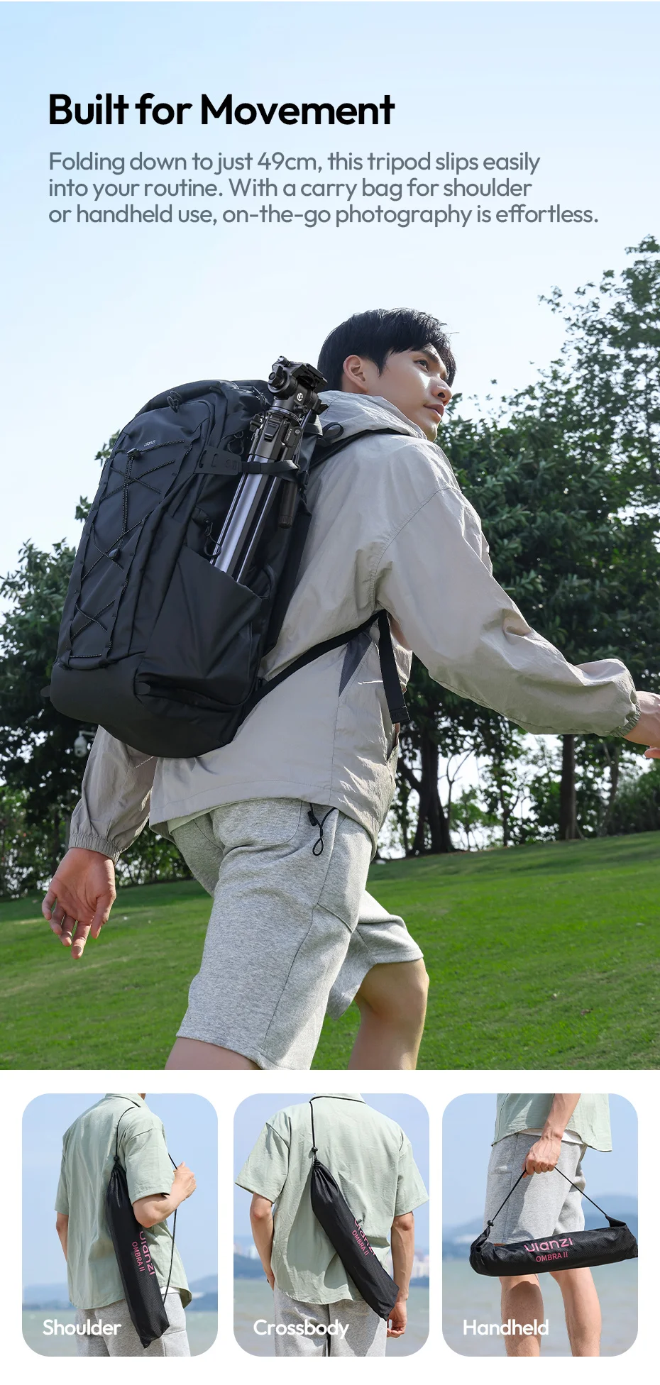 Trípode de viaje Ulanzi OMBRA VIDEO II de 1,57 M con 360 ° Soporte de trípode para cámara de liberación rápida Arca con cabezal esférico panorámico Sesión de ángulo bajo