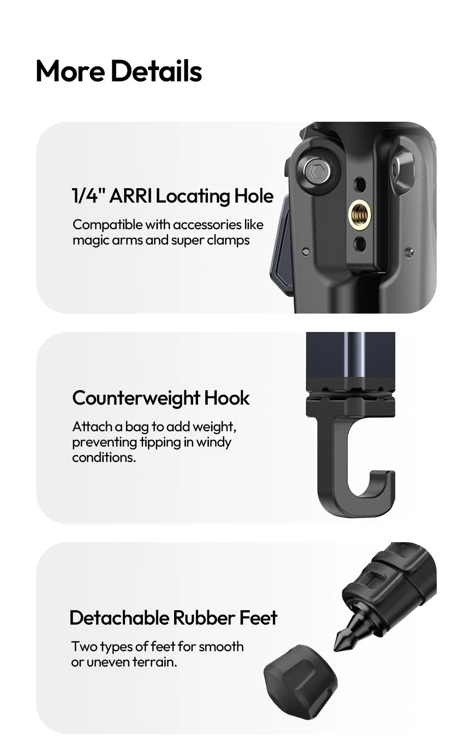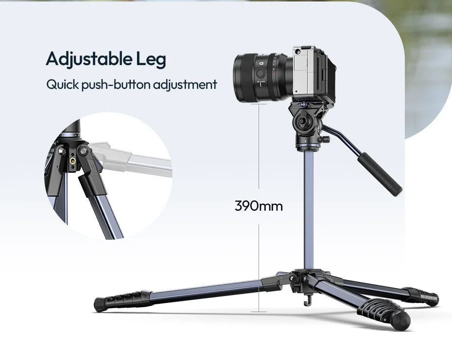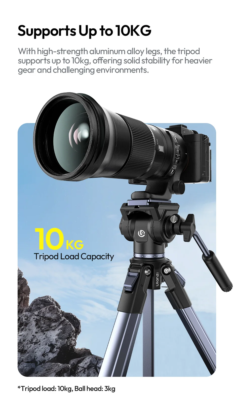 Trípode resistente y de buena calidad para equipos de cámara pesados, también funciona bien con lentes largas sin problema, pero no es adecuado para fotos verticales.