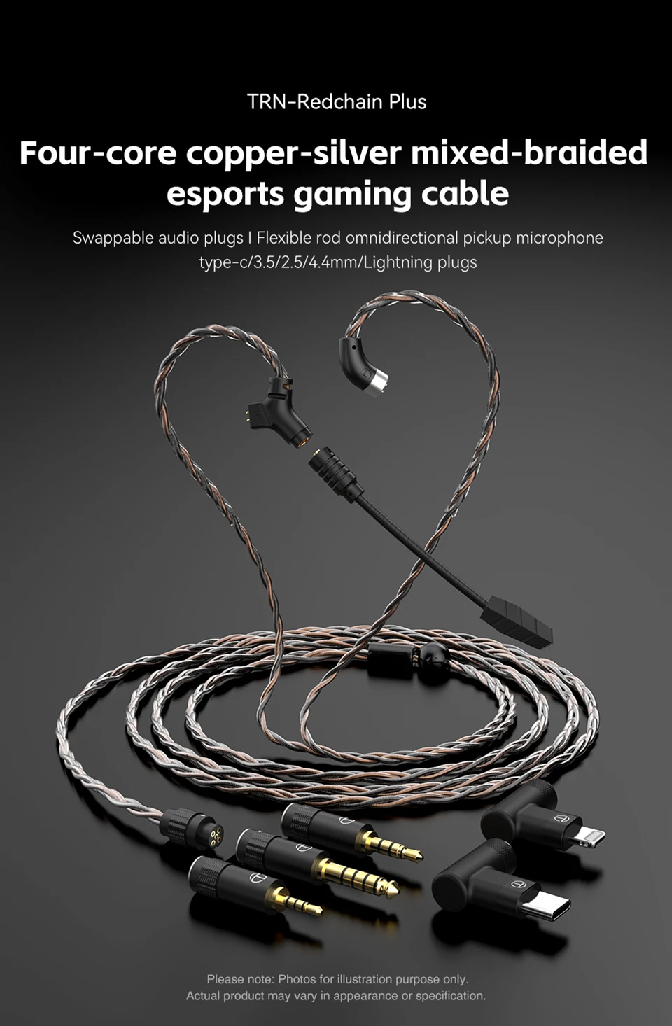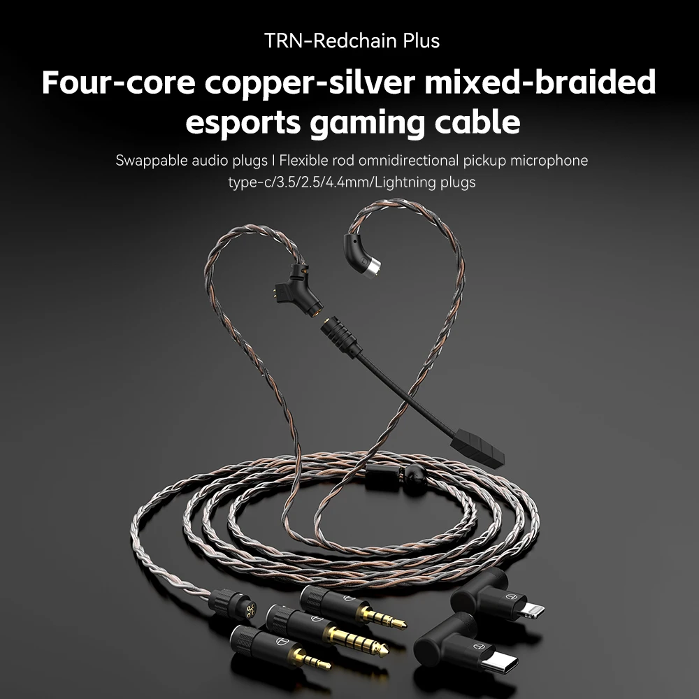 Comprar TRN-Cable de auriculares RedChain Plus QDC/S/C, Cable mejorado con enchufe intercambiable, 3,5mm/2,5mm/4,4mm/tipo C, 1,2 M/2M
