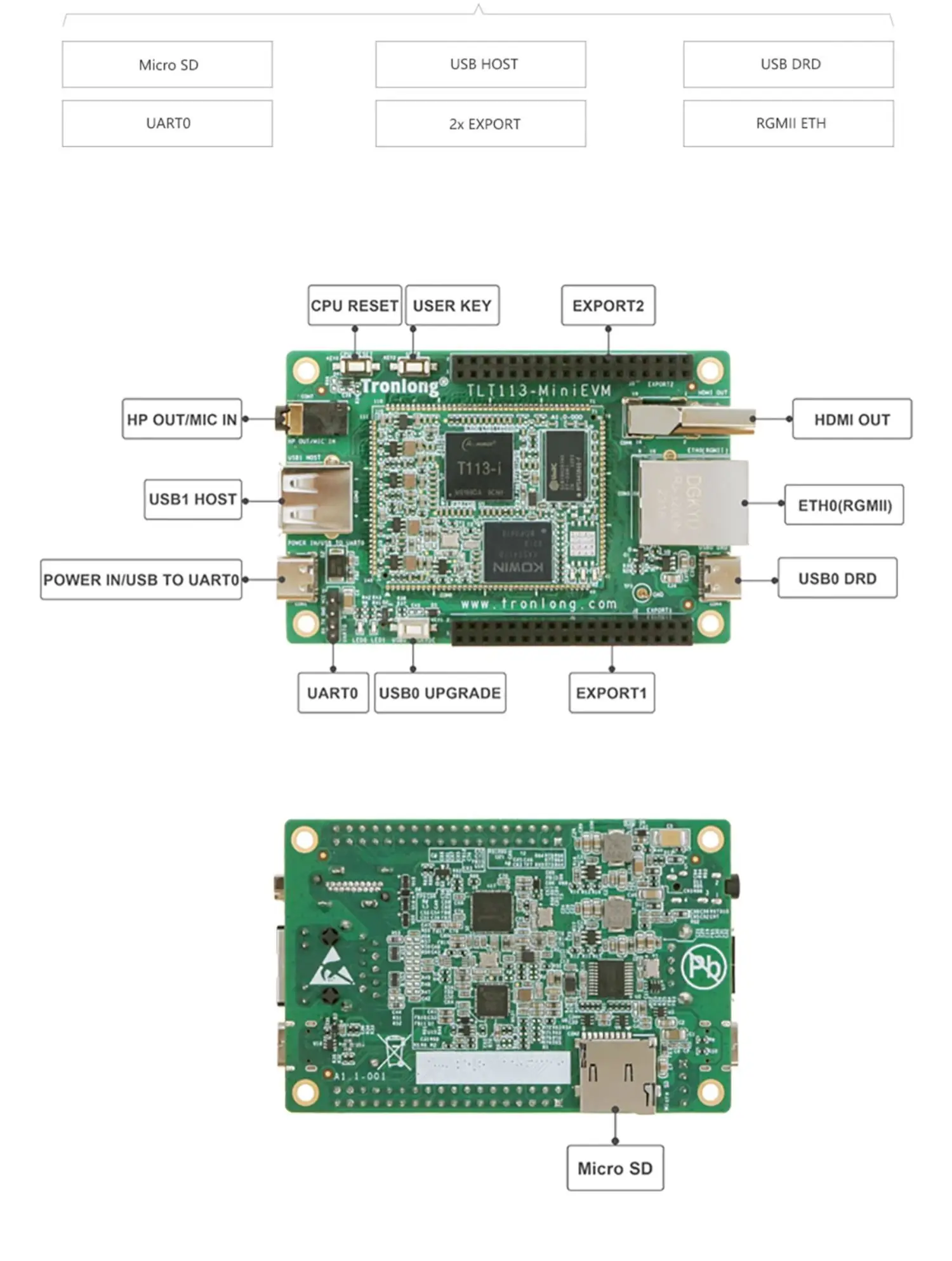 Procesamiento de doble núcleo: la placa cuenta con un procesador ARM Cortex-A7 de doble núcleo de 1,2 GHz, que proporciona capacidades de procesamiento eficientes y potentes para ejecutar aplicaciones complejas y multitarea.