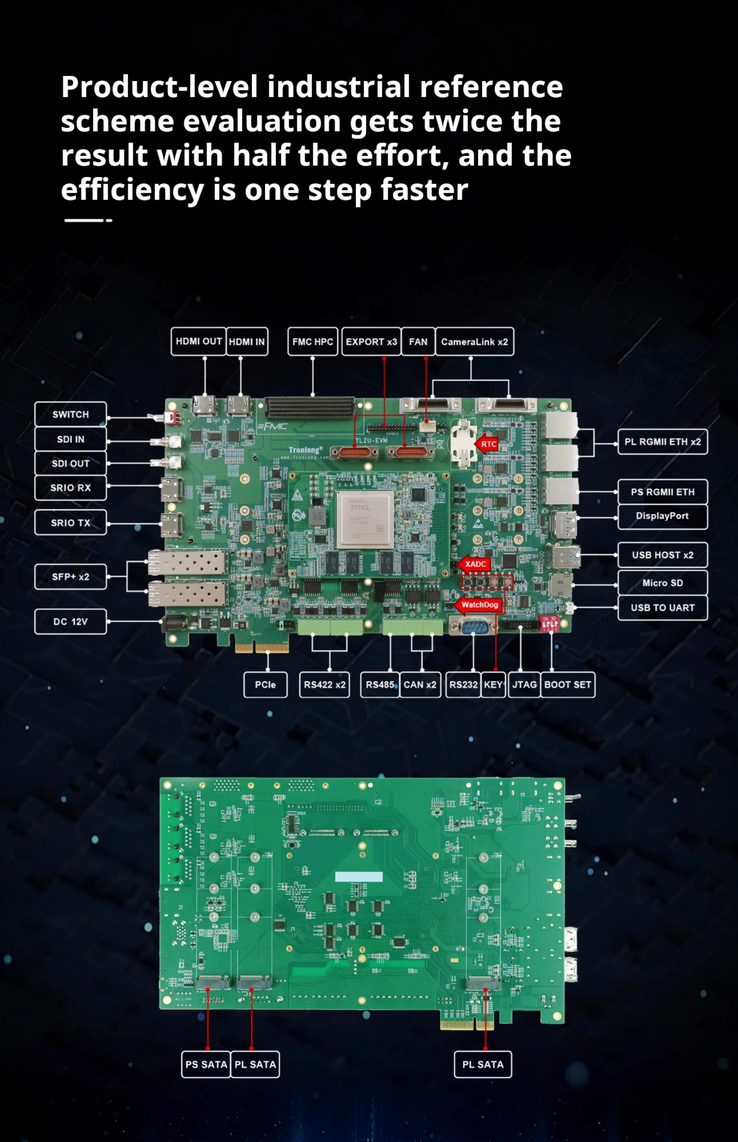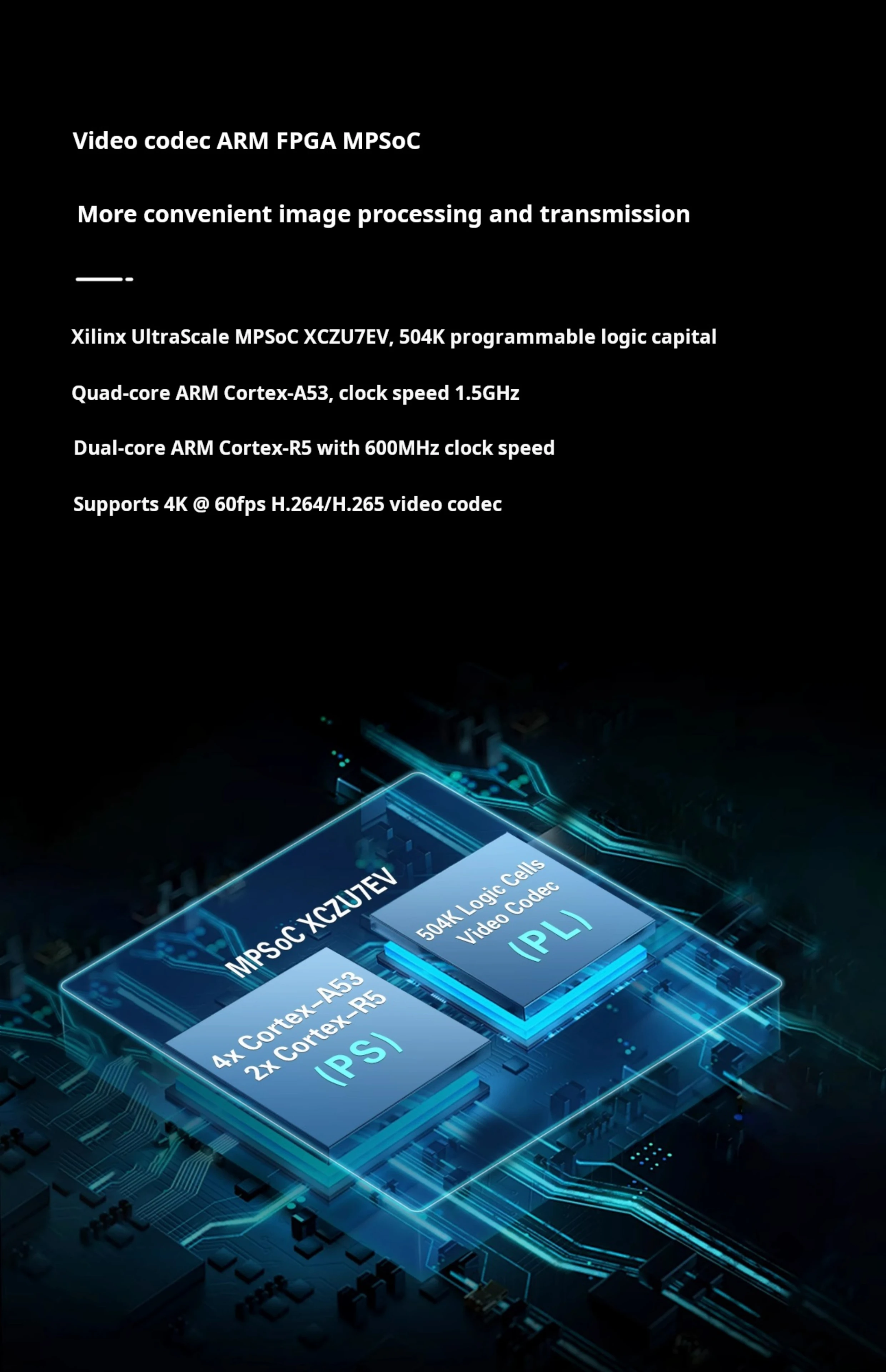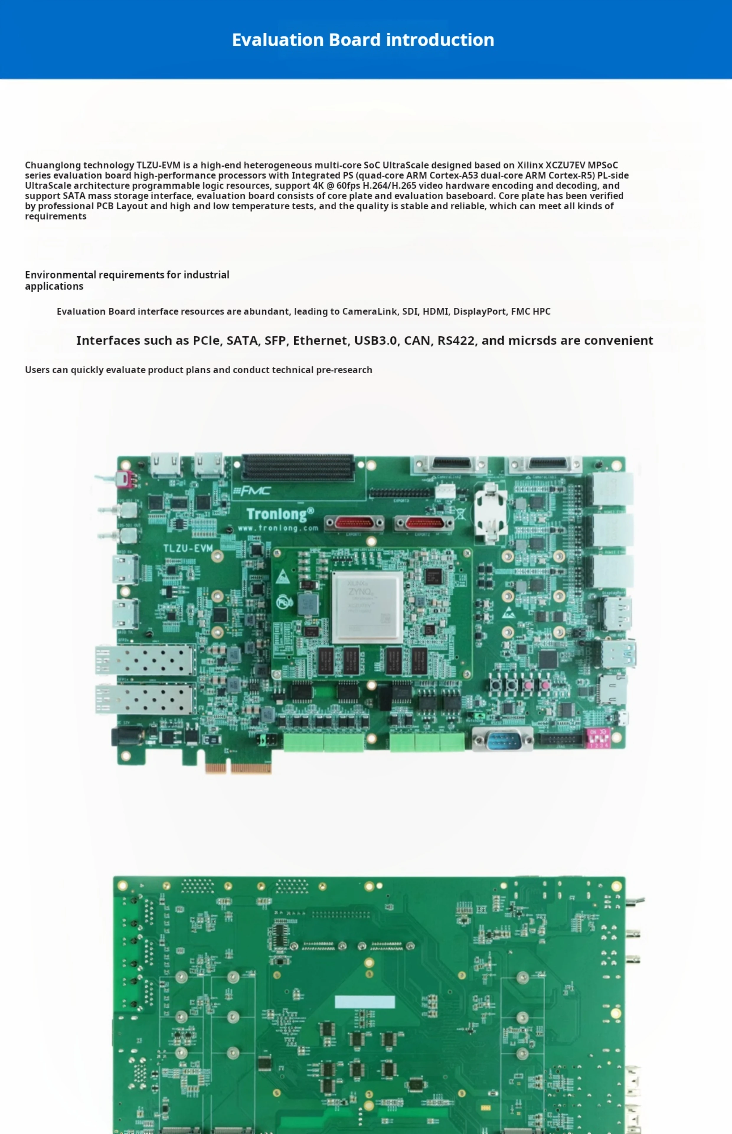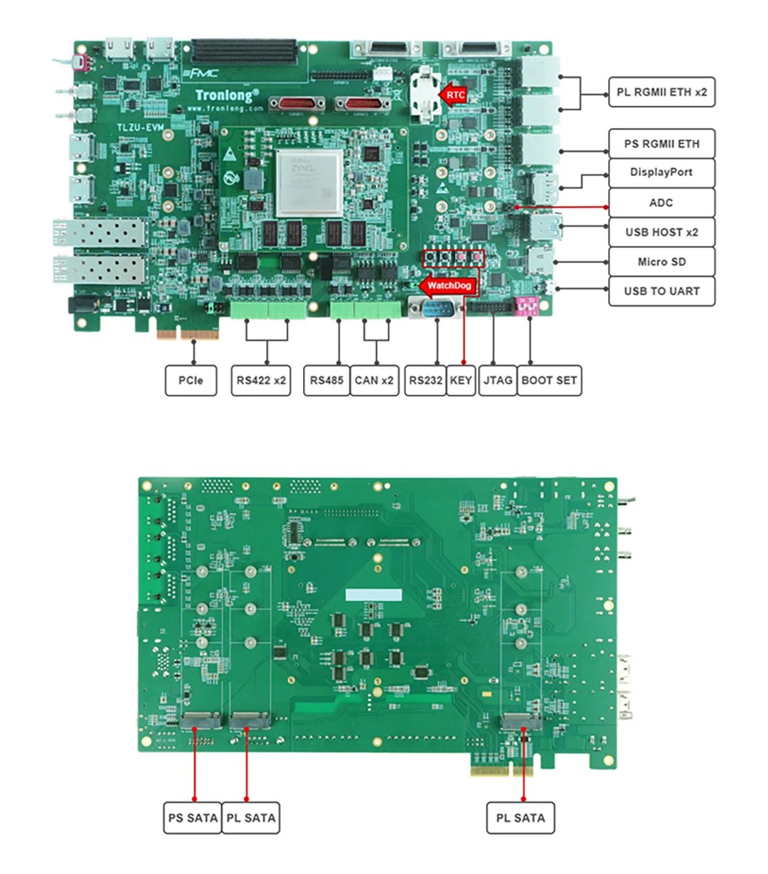 Combina ARM Cortex-A53 de cuatro núcleos a 1,5 GHz + Cortex-R5 de doble núcleo + FPGA (XCZU7EV) para informática industrial de alto rendimiento