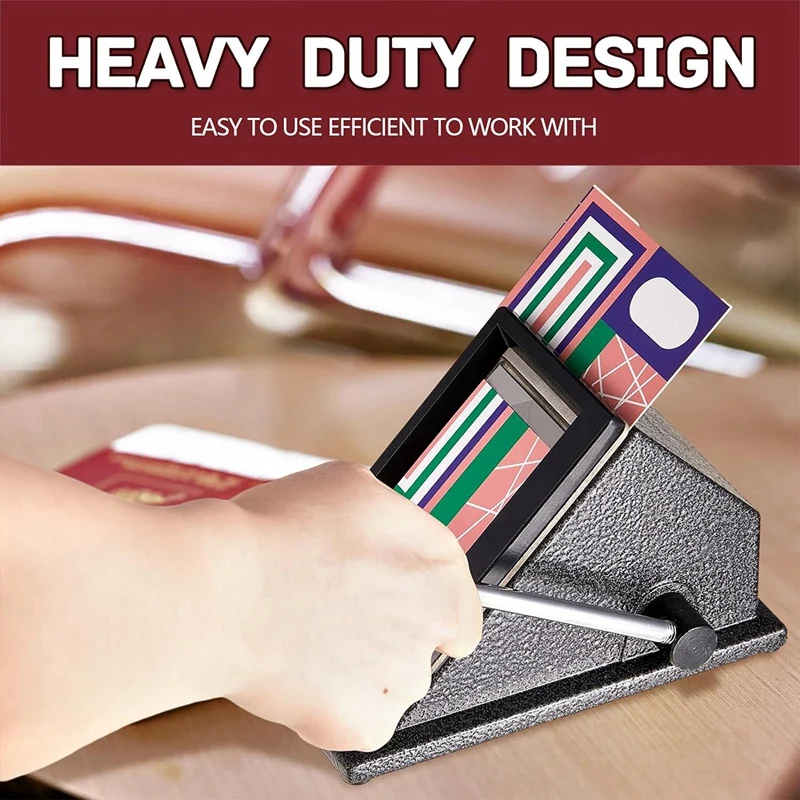 Material de calidad: el troquel de papel para pasaporte está Hecho principalmente de metal de calidad, no es fácil de romper y usar, fácil de cortar la foto y el papel, que se puede aplicar durante mucho tiempo