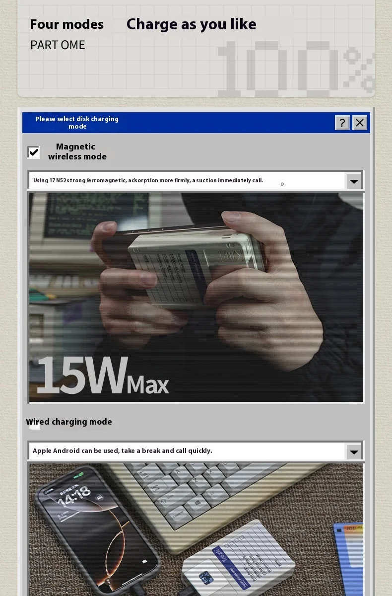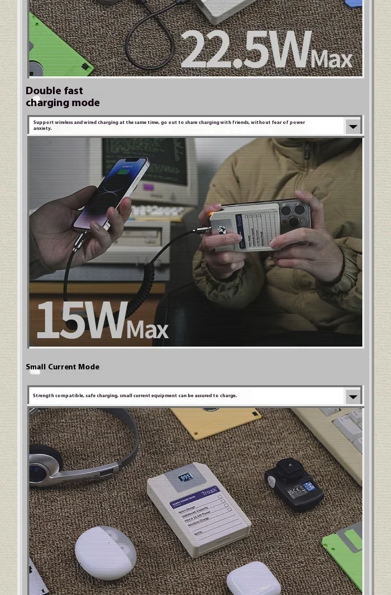 Tal cual la imagen, carga rapida, pero no carga inalambrica, tal vez sea problema de mi movil, igualmente sirve y se ve de buena calidad las instrucciones vienen todas en chino pero esta bien