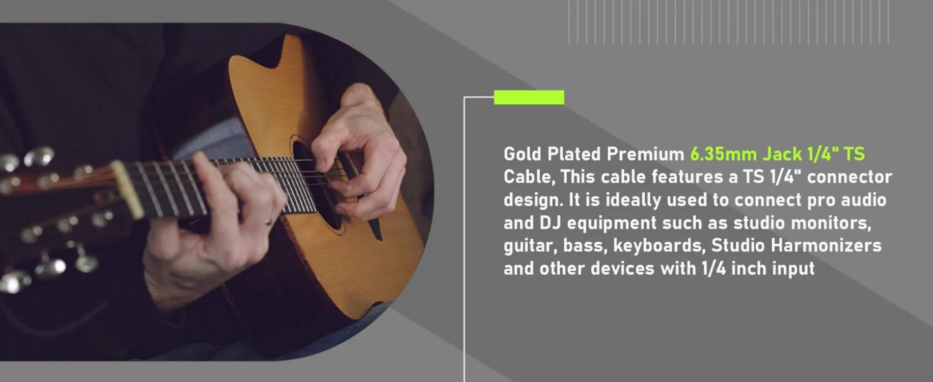 ⭐Cable TS de 1/4" con conector premium de 6,35 mm chapado en oro. Este cable presenta un diseño de conector TS de 1/4".Es ideal para conectar equipos profesionales de audio y DJ, como monitores de estudio, mezcladores, amplificadores y dispositivos similares.