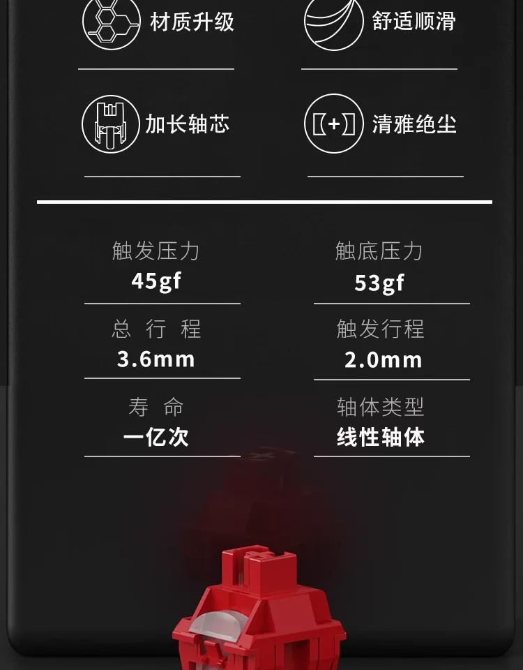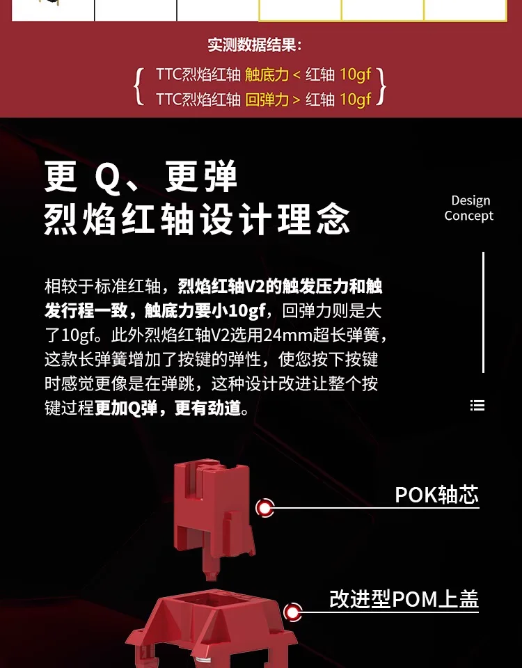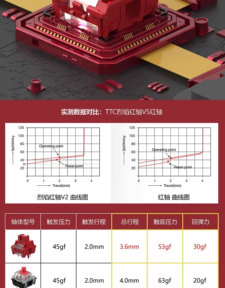 TTC llama interruptor rojo V2 45gf 5pin teclado mecánico lineal intercambio en caliente cuerpo del eje DIY interruptores personalizados
