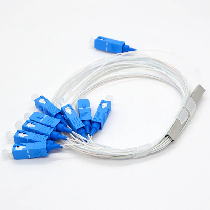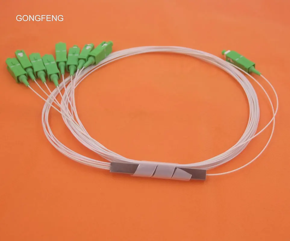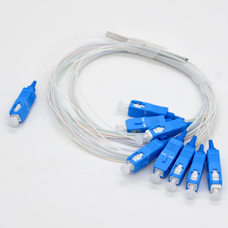 Conector de fibra óptica, divisor PLC, divisor de fibra de 1 puntos 8, prueba de tubo de acero mini SC, arnés de fibra desnuda diferencial 0,9,