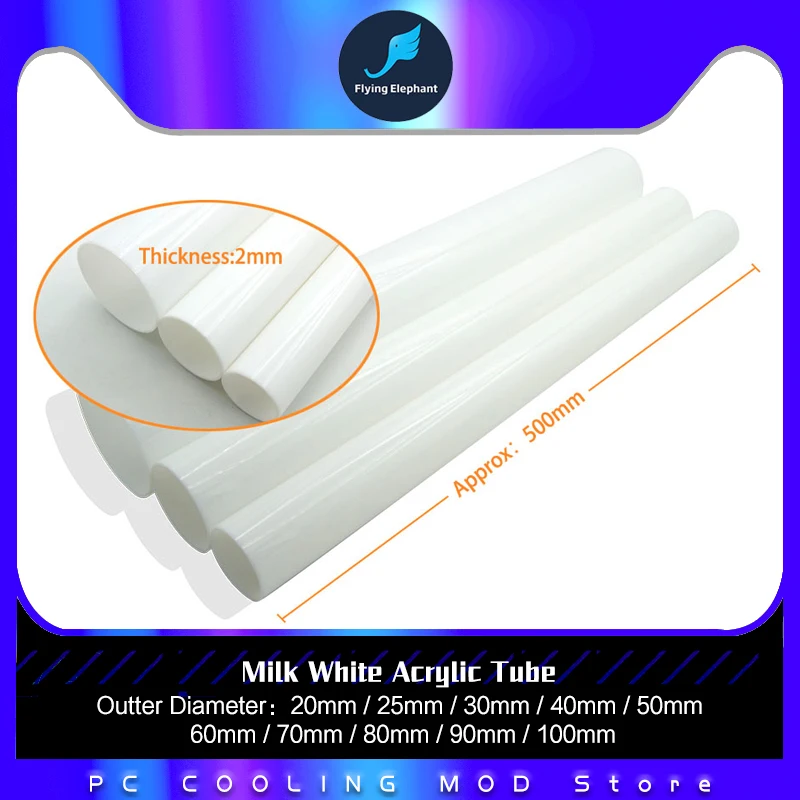 Comprar Tubo de acrílico blanco leche OD 20, 25, 30, 40, 50, 60, 70, 80, 100mm, 2mm, tubo de PMMA grueso de 50cm para tubo de luz de trabajo DIY