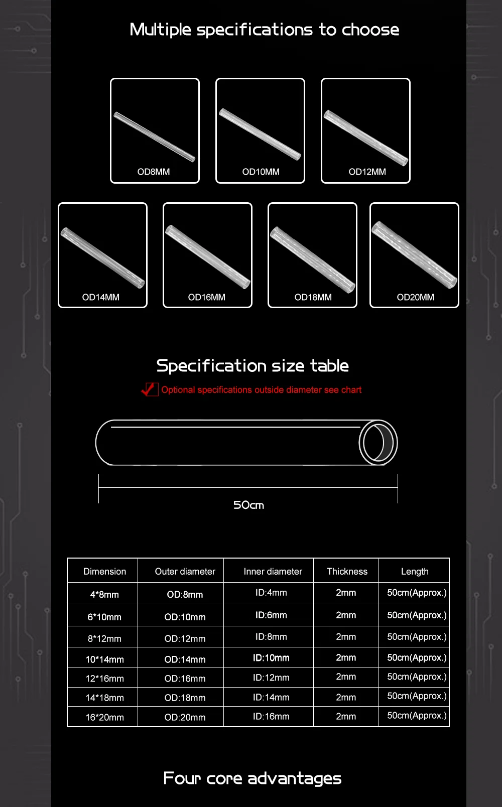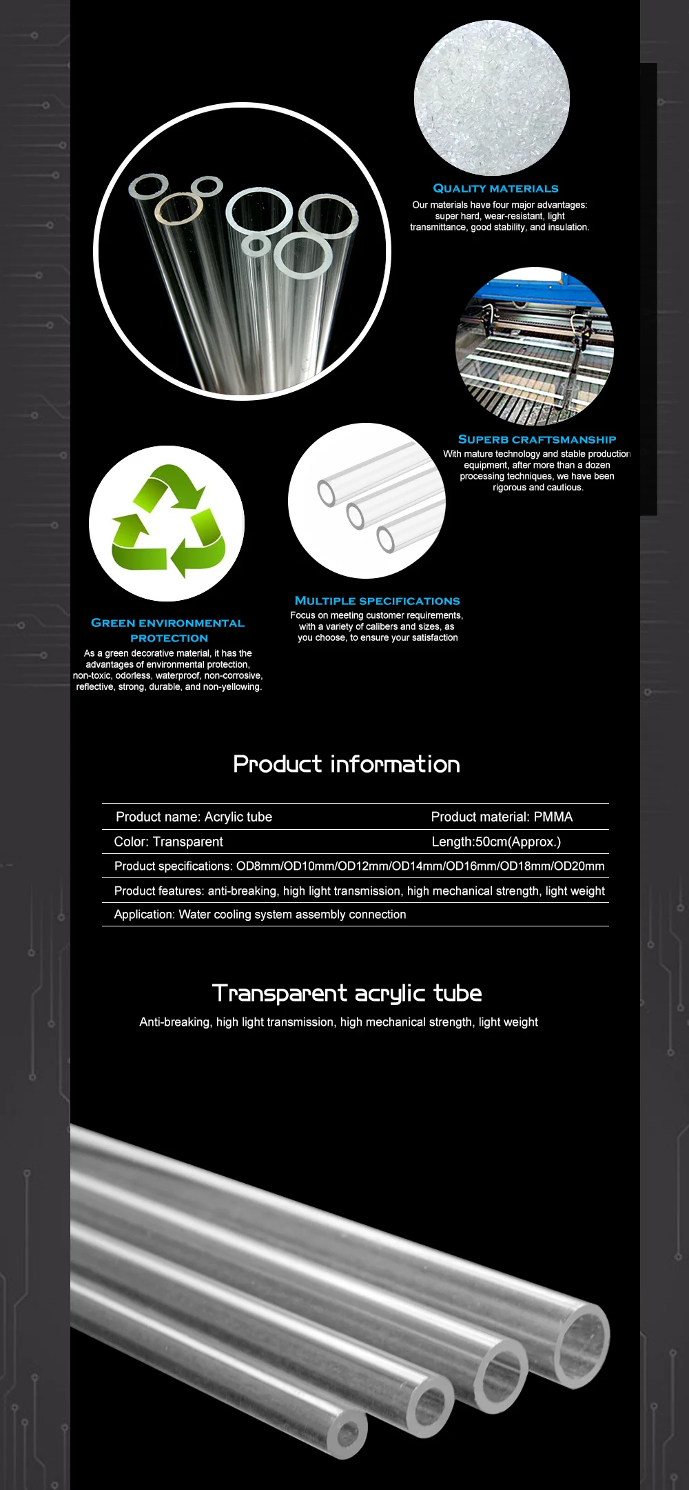 Comprar Tubo de acrílico transparente para acuario, tubería de agua dura PMMA, OD 8mm, 10mm, 12mm, 14mm, 16mm, 18mm, 20mm, vidrio orgánico DIY, 50cm