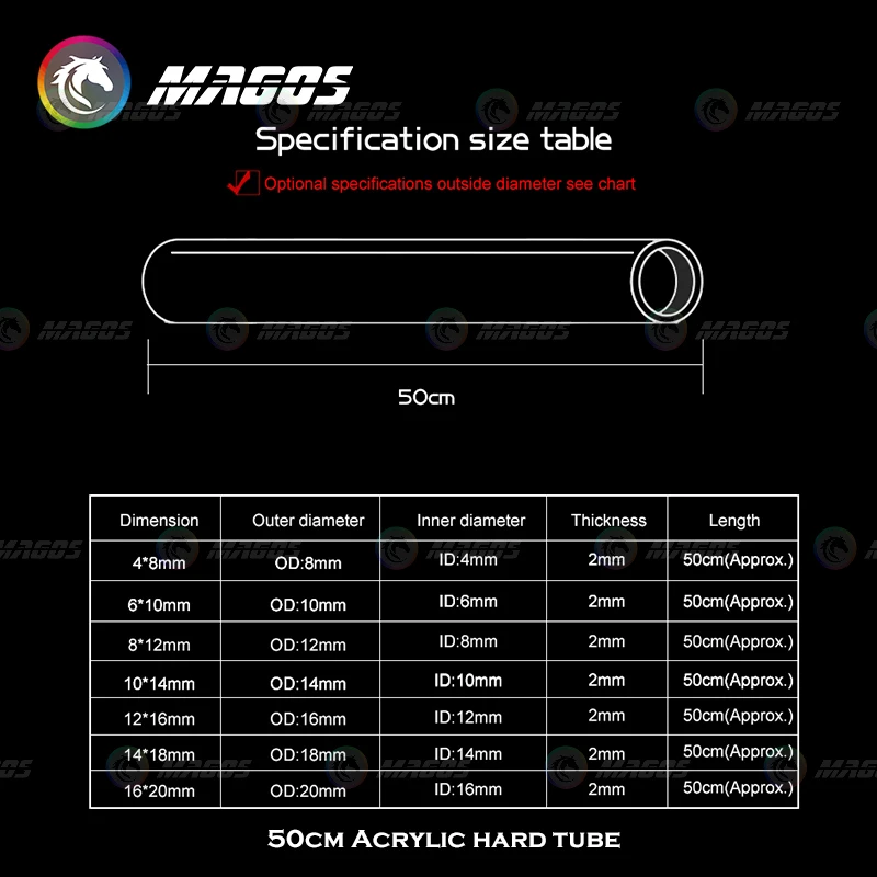 Comprar Tubo de acrílico transparente para acuario, tubería de agua dura PMMA, OD 8mm, 10mm, 12mm, 14mm, 16mm, 18mm, 20mm, vidrio orgánico DIY, 50cm